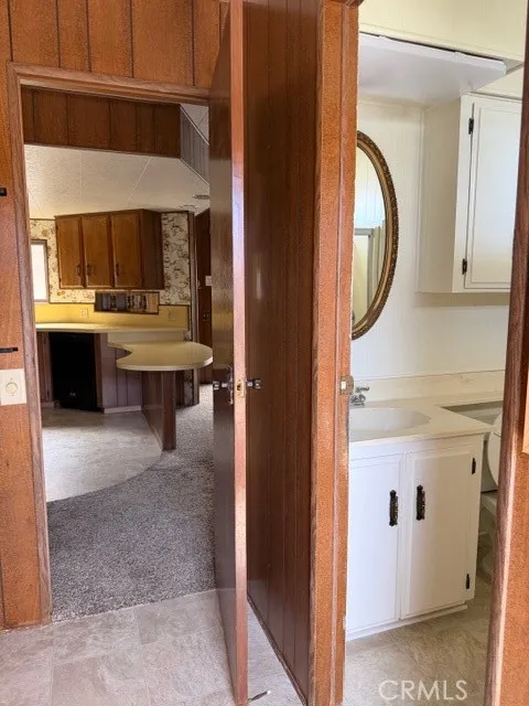 Manufactured home ON THE GOLF COURSE in senior community of SEVEN HILLS. Living room and formal dining area with built-in hutch. Kitchen with snack bar, wall oven, dishwasher and refrigerator open to family room. Family room has wet bar, built-in desk and shelves and slider to sunroom. Primary bedroom with three closets and ceiling fan. Primary bath with double sinks, makeup vanity and soaker tub with separate shower and toilet room. Two car garage with washer and dryer, garage door opener and lots of cabinets. Easy care yard with orange trees.