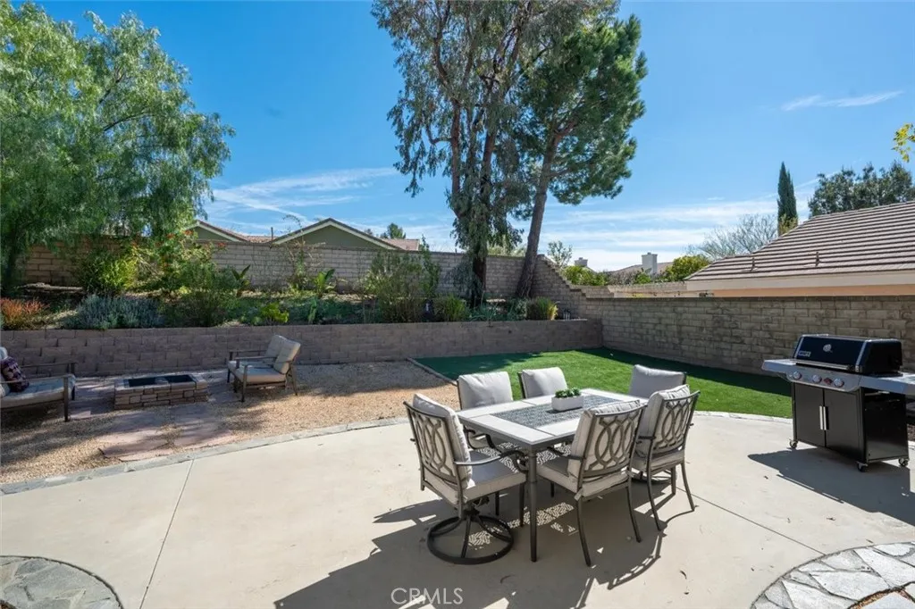 This beautifully updated single-story Northbridge home in the desirable Country Gate neighborhood showcases a fully remodeled open-concept kitchen, upgraded bathrooms, PEX re-pipe, newer roof and HVAC, luxury vinyl flooring throughout, low HOA, and No Mello Roos. Located on a cul-de-sac with direct paseo access, this 2 bedroom, 2 bathroom home sits on a 7,299 sq ft pool size lot and includes an attached 2 car garage. The kitchen was completely transformed by removing the wall between the living room and kitchen to create a true open layout. Upgrades include new quartz countertops, all new cabinetry, new sink, new range and hood, built-in microwave, under-counter wine refrigerator, a raised ceiling with recessed lighting, a new casement window over the sink, and a new sliding glass door leading to the backyard. Both bathrooms have been beautifully remodeled. The primary bathroom features a dual-sink vanity, walk-in shower with rainfall shower head, new toilet, and a raised ceiling with recessed lighting. The secondary bathroom includes a new vanity, mirror, toilet, and a newly refinished tub enclosure. The garage offers an electric-car charger outlet and is pre-plumbed for a future sink. Laundry has been relocated to the garage for added interior space. The spacious backyard features retaining walls, a newer sprinkler system, and ample room for a future pool. HOA amenities include a pool, clubhouse, tennis courts, and playground. Zoned for Helmers Elementary, Rio Norte Junior High, and Valencia High School.
