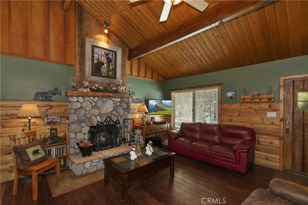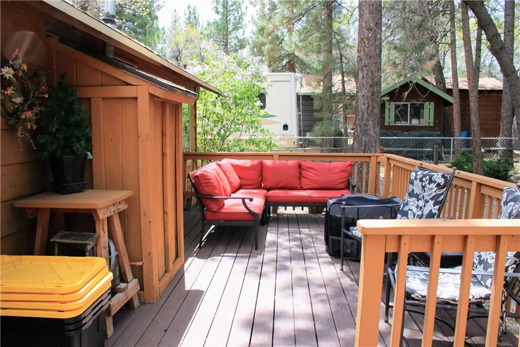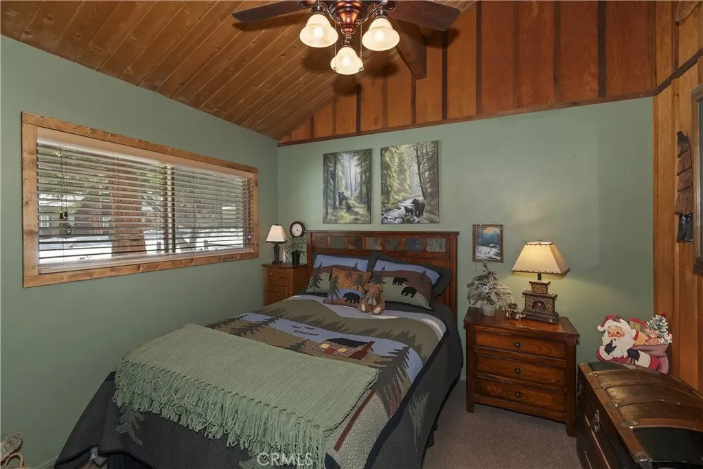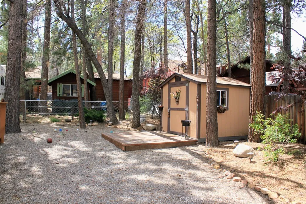 Cute as a button! When you think of a clean, cozy mountain cabin getaway, this one checks ALL the boxes. This charming 2-bedroom, 1-bath home offers 744 square feet of pure mountain character and thoughtful custom touches throughout, and it sits on a spacious 5,000 square foot lot giving you room to breathe and enjoy true mountain living. From the moment you step inside, youre welcomed by warm vaulted T&G ceilings, beautiful granite countertops, and rich hickory cabinetry that perfectly complement the cabin aesthetic. The space feels inviting, comfortable, and effortlessly charming. Meticulously cared for, this home is ideal as a full-time residence or the perfect weekend retreat. Think Big Bears version of The Holiday cabin intimate, storybook charm with thoughtful touches. Outside, the fully fenced yard is perfect for your furry friends, and the landscaped backyard provides a spacious setting to relax, entertain, or simply enjoy the fresh mountain air. A storage shed offers extra space for tools, toys, and seasonal gear. This hidden gem truly must be seen in person to be fully appreciated.