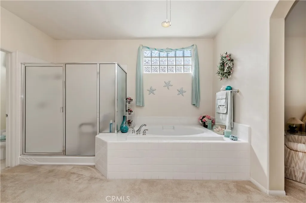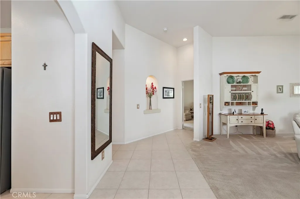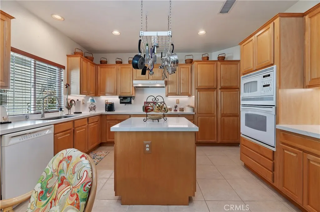 BEAUTIFUL SINGLE-STORY HOME in The Colony Premier 55+ Community! For the first time since being purchased from the builder, this well maintained home is available! Original owner. From the moment you step inside, youll be captivated by the soaring vaulted ceilings and an abundance of natural light. The great room features a formal dining area and a spacious living room with a cozy fireplaceperfect for relaxing or entertaining. The chefs kitchen is a true delight, boasting rich upgraded maple cabinetry, elegant granite countertops, a large kitchen island, a bright eat-in nook, and a refrigerator included. Your primary suite is a serene retreat with high ceilings, a California Style walk-in closet, dual sinks, a large soaking tub, and a separate walk-in shower. Two additional bedrooms are ideally located near their own bathroom, perfect for guests or a home office. The indoor laundry room offers a utility sink and ample storage. Step outside to your private patio, perfect for enjoying the outdoors. The beautiful entry courtyard creates a welcoming first impression. Additional features include peace of mind that home was REPIPED in 2025, and New AC and Heating System installed approx. 3 years ago, plus a garage with storage cabinets and a large storage alcove with workbench. This home combines comfort, style, and an great location within a vibrant community offering resort-style amenities.The Colony itself is a premier gated senior community for residents 55+, offering a wealth of amenities, including a resort-style clubhouse, a year-round pool, two spas, and lighted pickleba