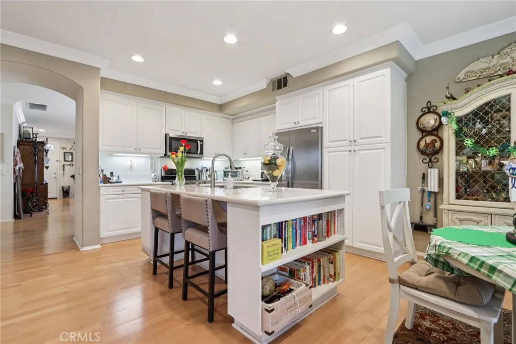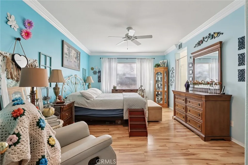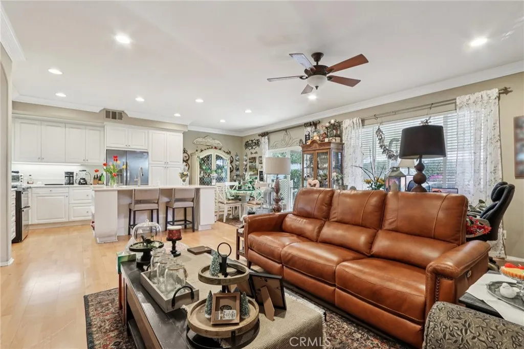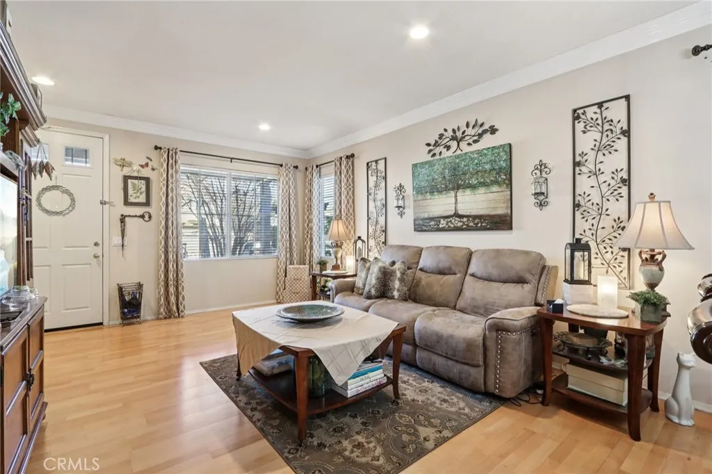 Welcome home to charming curb appeal that instantly makes you smile. From the white picket fence and mature landscaping to the warm, inviting exterior, this home makes a beautiful first impression the moment you arrive. Nestled on a quiet cul-de-sac in the highly sought-after Mapleton community, this beautifully maintained home offers the perfect blend of space, comfort, and everyday functionality with no HOA. Inside, youll find four generously sized bedrooms and two full bathrooms, along with a thoughtfully designed layout ideal for both daily living and entertaining. The spacious kitchen features an island with bar seating, abundant cabinet and counter space, and opens seamlessly to the inviting family room with media niches and a cozy fireplace. A formal living and dining room provide the perfect setting for hosting family and friends. The home also includes solar, a built-in office/ hallway workspace, and beautiful wood and Pergo flooring throughout, complemented by elegant crown molding. Step outside to enjoy a drought-resistant front yard and a beautifully landscaped backyard complete with multiple fruit-bearing trees, including orange and peach trees, along with an Alumawood patio cover perfect for relaxing or entertaining year-round. A three-car garage adds extra convenience and storage. Located just steps from nearby walking trails and parks, and only minutes from shopping, dining, and everyday essentials, including Costco, Target, and Starbucks, this home also offers easy access to the 215 freeway. This charming cul-de-sac home offers comfort, space, and an unbea