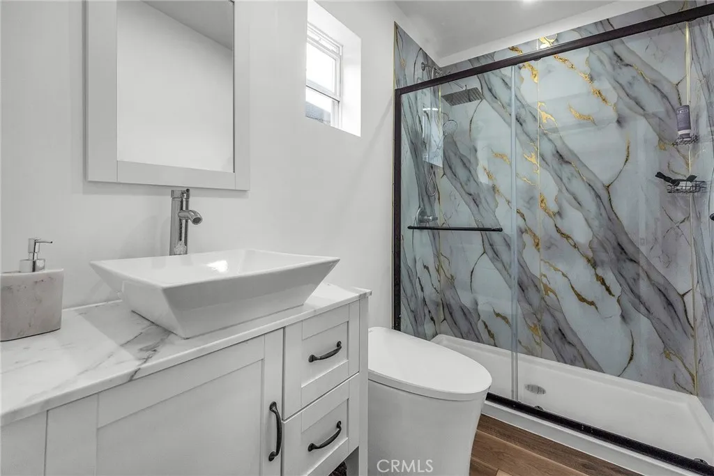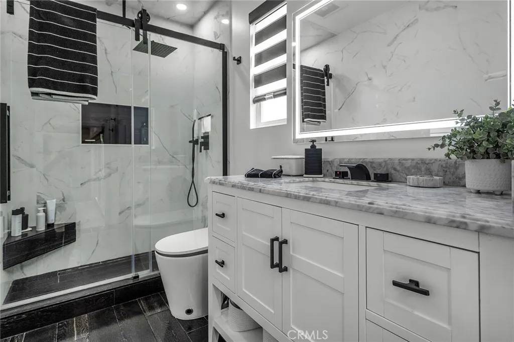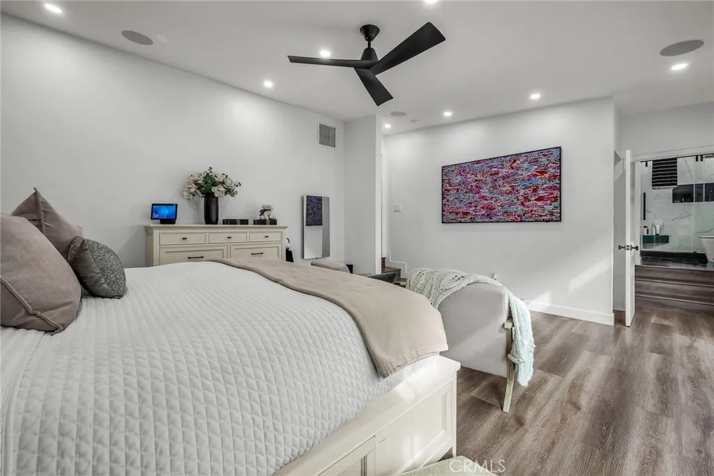 Beautifully updated home located on a quiet street in desirable Lake Balboa, blending modern luxury with energy-efficient living. The property is fully enclosed by a brand-new modern privacy fence and features a new roof installed in 2024, offering both security and long-term peace of mind. Step inside to a bright open floor plan enhanced by a recent permitted addition, custom-built wall units, and built-in closet. The primary suite features a large walk-in closet and new remote-controlled blinds for added comfort and convenience. Smart & Modern Features: Automated blinds throughout the home Smart bathrooms with high-end automated fixtures Fully paid-off solar panel system Four flush-mounted ceiling speakers (included) High-quality integrated sound system in the exterior office Full suite of newly installed high-end appliances Enjoy year-round comfort with central HVAC plus three bedrooms equipped with newly installed mini-split units for personalized climate control. The backyard is designed for modern living and entertaining, featuring a detached exterior office with private bathroom, a premium built-in barbecue, and two storage rooms (approx. 20x6 and 10x10). The home recently completed a permitted addition, currently in the process of being updated in the city system. Buyers are advised to conduct their own due diligence regarding exterior structures and features. A rare opportunity to own one of the most upgraded homes in the neighborhood.