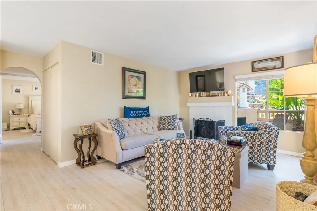 Welcome to beautiful move in ready condo in desirable Briosa association in Laguna Hills. This condo offers 2 bedrooms and two full baths. Master bedroom with walk-in closet and private bath. second bedroom is perfect for office or quest room. Kitchen is upgraded with quartz counter top, new cabinets and some new appliances. New flooring and painting throughout the house with high quality laminate. Laundry with stacked washer and dryer. Enjoy relaxing by the fire place in the cozy living room. Beautiful wrap around patio is private and perfect area for morning coffee and entertaining. One detached garage with storage. plenty parking for your quests.Resort - style Briosa community amenities:Pool, jacuzzi, childrens park, and scenic walking trails. Repiped ln 2018 for added peace of mind.Water and trash services included in HOA dues. Close to shopping centers, parks, walking , biking, hiking trails . Easy access to freeways and toll roads.