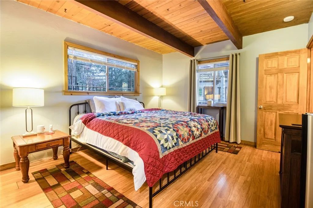 Escape to your private mountain oasis at this cozy and serene cabin located in the picturesque Lake Gregory community, just 15 minutes away from Lake Arrowhead. Perfect for those seeking relaxation or adventure, this beautifully updated cabin offers a peaceful getaway while being just minutes from the lake, historic San Moritz Lodge, and local amenities. Cabin is perfect for personal use and an additional source of income with an approved active short-term rental(STR) permit. Property features 3 bedrooms and 2 baths, updated granite countertop kitchen with new appliances, new washer and dryer in dedicated laundry space, brand new roof installed 2022 with permits, new 200 AMP electrical circuit breaker PLUS car charging outlet in driveway (2022) with permit, power generator outlet (2022), approved for Short Term Rental (STR) permit for a max occupancy of 8 persons, cement paved front deck and back patio with dog kennel and fenced-in outdoor space with plenty of room to expand overlooking the creek. The driveway is paved and level with the street, making parking easy and maintenance-free. The interior is freshly painted with year-round easy access from the city road and an easy walk to the nearby lake. The home is turn-key ready with furniture, security cameras, keyless door entry, water & temperature monitoring systems for easy mountain living. This property currently has these ratings for VRBO(9.8/10 150+ reviews)/AirBNB (4.9/5.0 20+ reviews) and can immediately be operated as a Short Term Rental(STR) by the new owners.