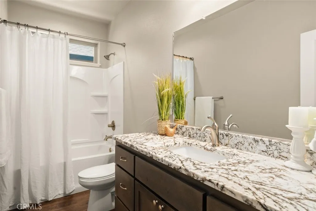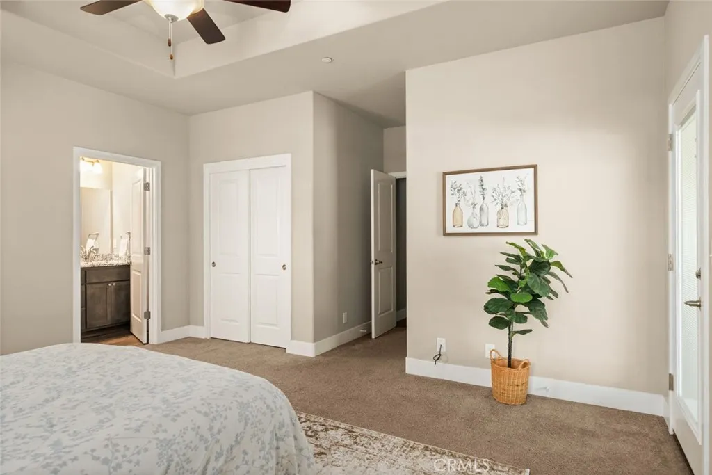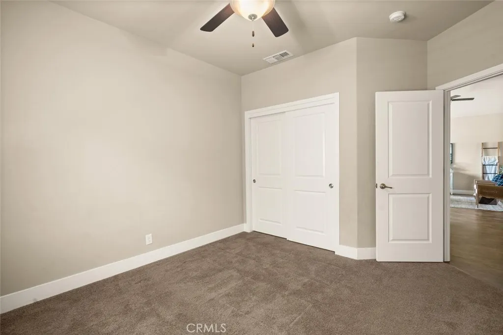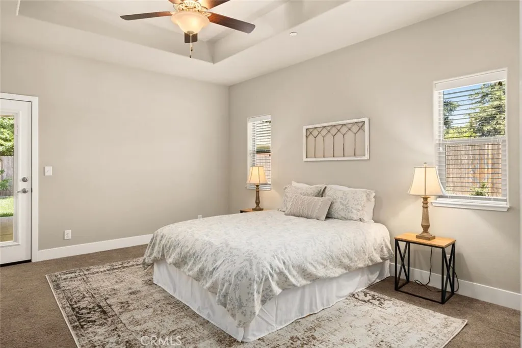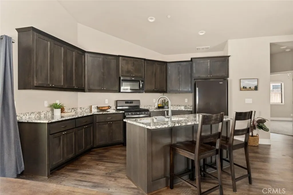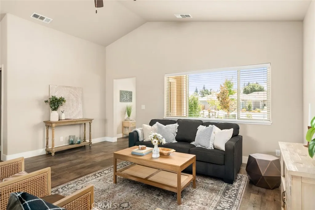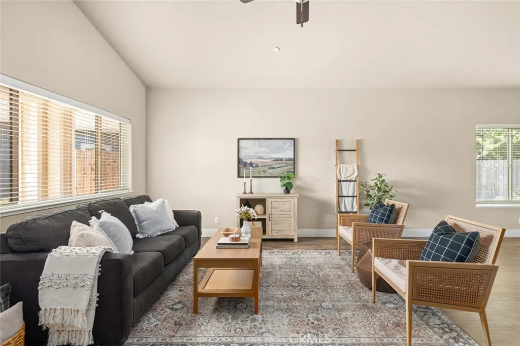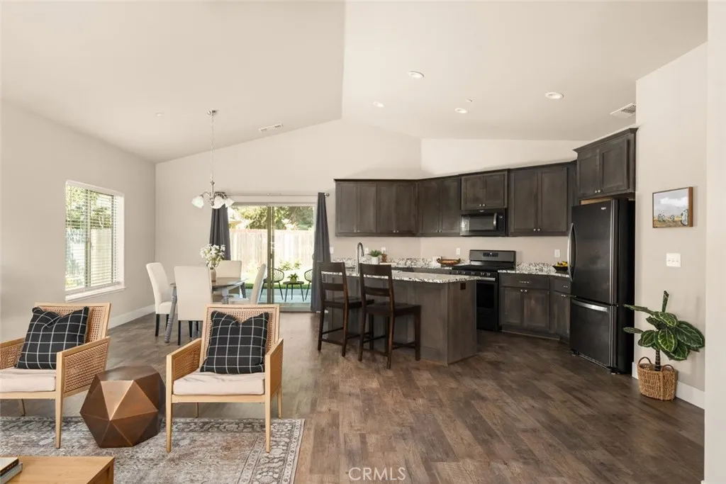 Constructed in 2019 with owned solar, and showcasing exceptional attention to detail, this home rests on one of the most spacious lots within this serene neighborhood. From the moment you step inside, youre welcomed by a bright, modern interior featuring luxury vinyl plank flooring, 9-foot vaulted ceilings, soft neutral tones, and a highly desirable open-concept layout that creates an airy, inviting atmosphere. The thoughtfully designed kitchen is perfect for everyday living and entertaining alike, showcasing granite countertops, rich wood cabinetry, sleek modern appliances, a gas range, and a spacious center island with breakfast bar seating. Retreat to the generously sized primary suite, complete with elegant tray ceilings, private backyard access, dual closets, and a spa-inspired bathroom offering double sinks and an oversized walk-in shower. Additional highlights include recessed lighting, ceiling fans throughout, a separate indoor laundry room, owned solar, and a spacious two-car garage. Step outside to a newly landscaped backyard designed for both relaxation and fun. Enjoy summer evenings under the covered patio with ceiling fan and recessed lighting, play on the lush green lawn, or take advantage of the extra space to create your own garden oasis. With its extensive list of amenities, prime location, and fresh, contemporary feel, this home truly offers the ideal setting to unwind and enjoy life.