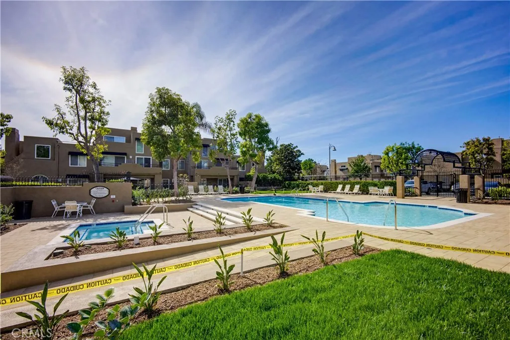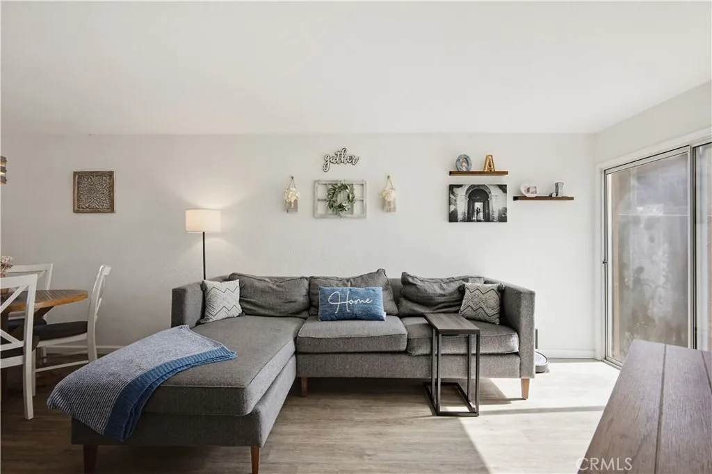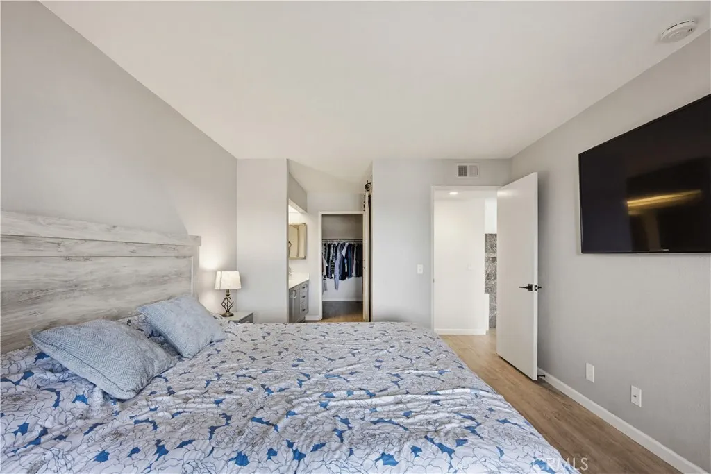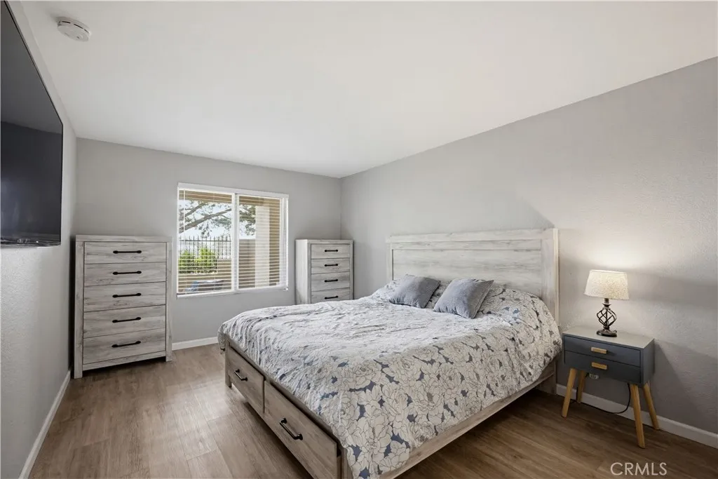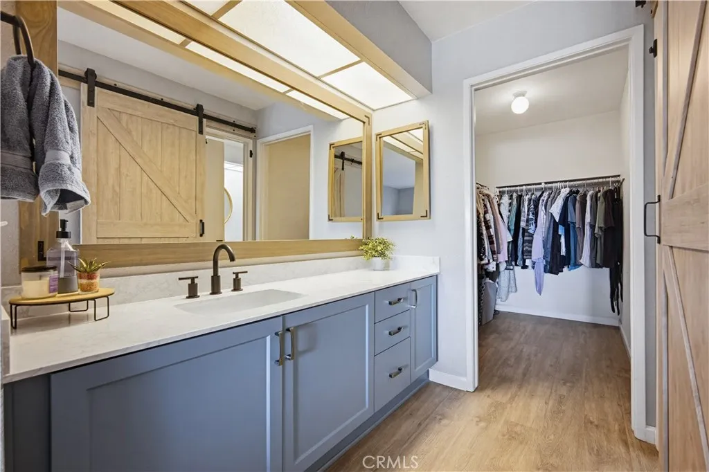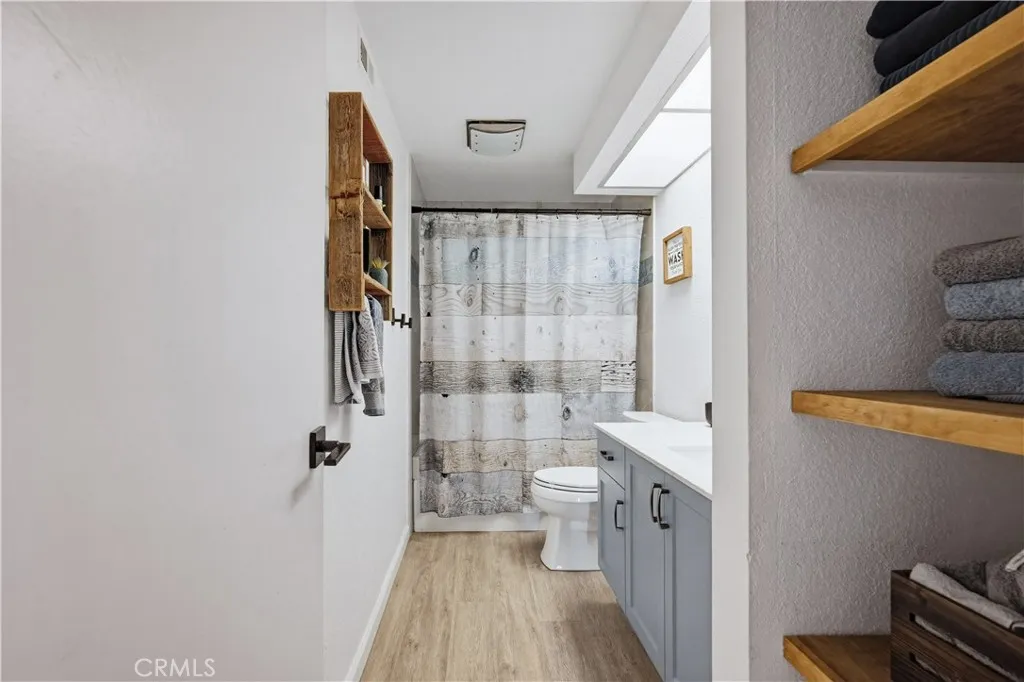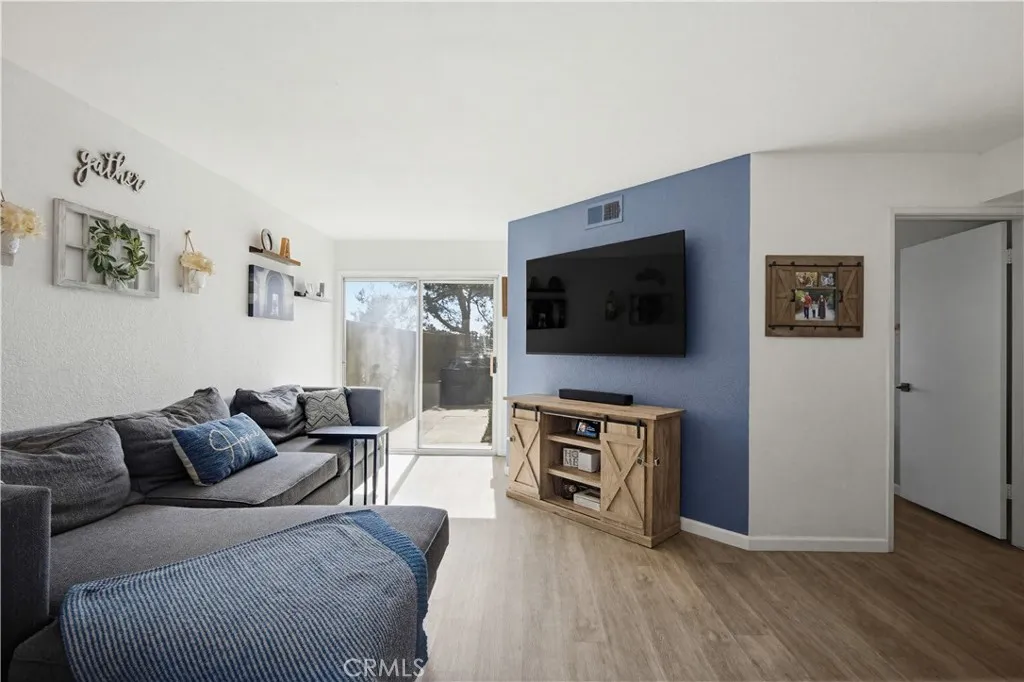 Blessed with a prime location perched high at the edge of the community, situated on a greenbelt taking full advantage of gorgeous city lights, hills, and vibrant sunset views, this beautifully updated home, in the desirable Rainbow Ridge community, is conveniently located within walking distance of Trabuco Hills Center and Portola Plaza with numerous shopping and dining venues. Step inside and soak in the light filled interior with sleek Luxury Vinyl Plank Flooring throughout and an open-concept, single level, floor plan setting the stage for an ideal living space. The elegant fireplace with Granite surround in the living area creates an inviting gathering space for dining and relaxing with loved ones. Sliding doors open to the private back patio providing a superb indoor-outdoor living space to enjoy the gorgeous views. The sparkling updated kitchen has been beautifully remodeled with glass tile backsplash, Quartz countertops, timeless white Shaker cabinetry, updated hardware and pulls, deep stainless-steel sink, and stainless-steel appliances. The primary bedroom suite is a peaceful retreat with sit down views and a gorgeous, remodeled Quartz-topped vanity with sink, updated cabinetry and pulls, sleek fixtures, framed vanity mirrors, and a walk-in closet. Space-saving barn doors provide direct access to the full bathroom, thoughtfully updated mirroring the same gorgeous Quartz topped vanity, cabinetry, and fixtures, creating a well-designed flow throughout the home. The secondary bedroom is filled with natural light and has the same gorgeous backyard views. The private w