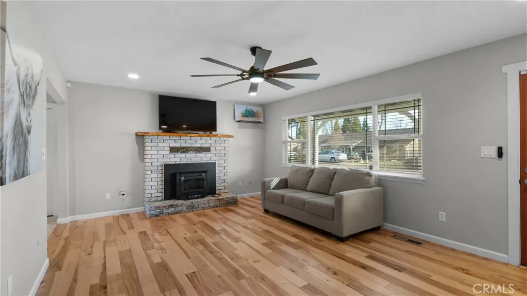 Welcome to 1465 Happy Woods Ln in Paradise, a well-maintained 3 bedroom, 2 bathroom home located on a quiet dead-end street. This property offers a comfortable layout, recent updates, and plenty of space both inside and out. Recent improvements include new exterior paint, a newer roof, and a newer furnace, providing both curb appeal and peace of mind. The spacious living room features a cozy wood stove and flows into the dining area and kitchen, creating a functional space for everyday living and gatherings. The primary bedroom includes a walk-in closet and its own bathroom, while two additional bedrooms provide flexible space for guests, a home office, or hobbies. Outside, the landscaped backyard creates an inviting setting for relaxing, gardening, or entertaining. A detached studio shed offers additional versatile space that can be used as a hobby room, art studio, workspace, or extra storage. The property also features large RV and trailer parking, offering plenty of room for recreational vehicles, boats, or equipment. Situated on an approximately 0.39 acre lot, this property provides space to enjoy the outdoors while still being conveniently located near local amenities. With thoughtful updates, flexible living spaces, and a peaceful location, this property offers a great opportunity to enjoy comfortable living in Paradise.