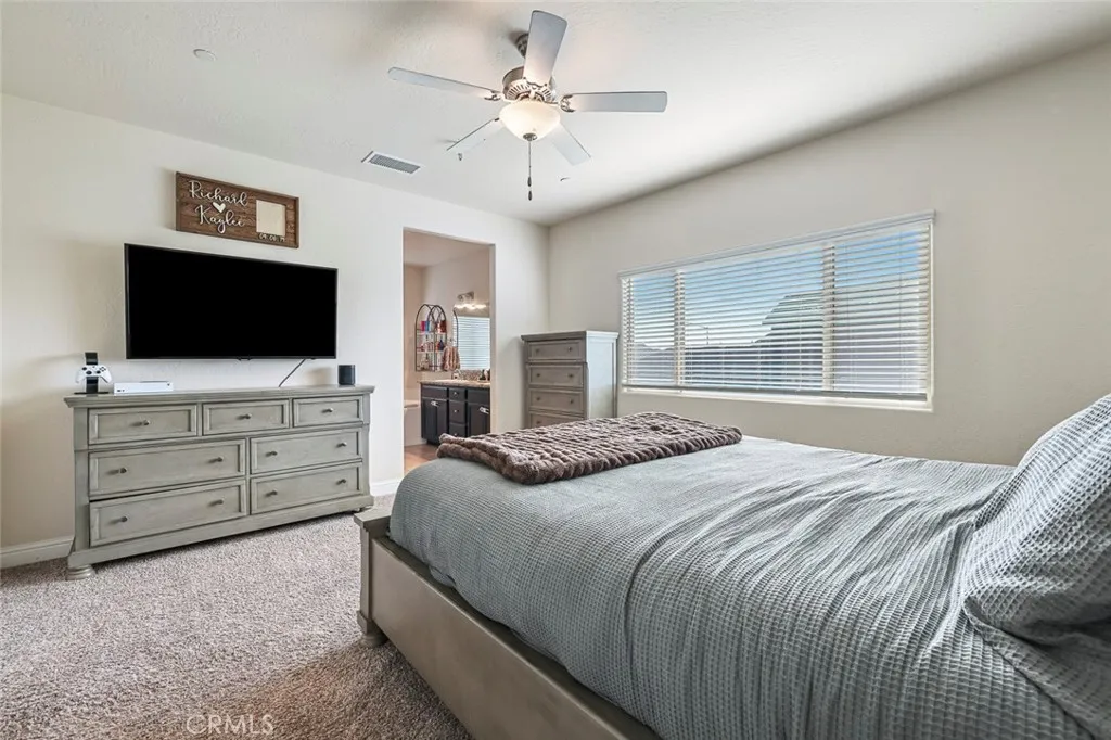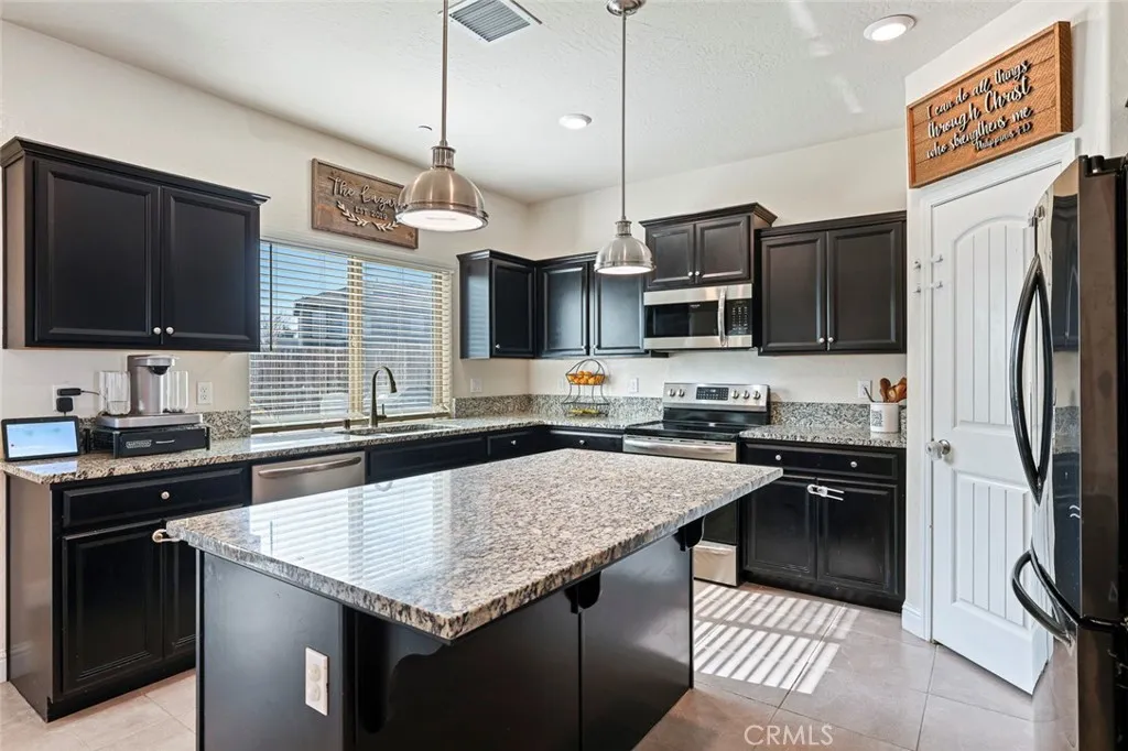 Discover this remarkable 4-bedroom residence PLUS a versatile flex room that combines modern & stylish comfort with thoughtful design. This spacious home features an additional bonus room downstairs, ideal for a playroom, home office, media retreat, or gaming space- offering functionality to meet a variety of needs. The open-concept living area feels bright & welcoming and features a spacious great room with tons of natural light! A large kitchen with pantry storage, a center island with seating, and an abundance of counter space enhances the home's fresh, contemporary feel. A gas stove option is already in place for the true chef who enjoys cooking with gas, and the convenience of a dedicated powder room on the main level adds to the home's well-planned layout. The home is also packed with smart features including a front door that can be opened with an app or fingerprint, Alexa-enabled lighting, a smart sprinkler system, and a garage door that can be controlled right from your phone. Enjoy the benefits of owned solar panels, keeping energy costs impressively low with a Tru-Up bill of only $286 for the entire year! Extensive flatwork has also been added, including additional cement for extra parking near the garage, a large back patio, and cement surrounding the exterior of the home. The backyard offers a blank slate ready for your dream outdoor design, already featuring a spacious covered patio with a built-in TV perfect for relaxing or entertaining year-round! The garage offers even more versatility with an extra bonus space that's great for a small home gym, workshop, o