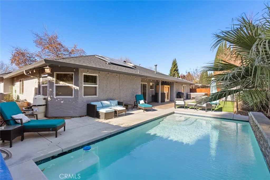 This beautifully designed home is located in the highly desirable Amber Grove neighborhood, just a couple of blocks from Peterson Park. Built by Bill Webb, this home features one of the most sought-after floor plans. On one side of the home, youll find three spacious bedrooms and two bathrooms, while the opposite wing features a private bedroom and bathroomideal for guests, extended family, or a home office setup. The home welcomes you with easy-to-maintain landscaping in both the front and backyard, creating great curb appeal without the extra upkeep. Inside, the large great room impresses with high ceilings and a charming brick fireplace, creating a warm and inviting gathering space. Just off the great room is an additional open room that offers flexible use as a formal dining area, second living room, or game room. The family room flows seamlessly into the kitchen, making it perfect for entertaining. The kitchen offers lots of counter space, a convenient breakfast bar, and stainless steel appliances. A large dining area filled with natural light features numerous windows and a built-in dining bench for cozy meals and gatherings. On the private suite side of the home, youll also find a large laundry room complete with storage and a utility sink. The separate bedroom and bathroom in this wing provide an excellent retreat for guests or multi-generational living. The primary suite is truly impressiveHUGE in size with its own private access to the patio, a large walk-in closet, and a spacious en-suite bathroom. Two additional bedrooms and another bathroom complete this wing o