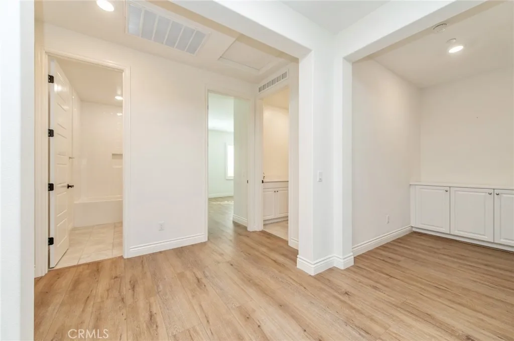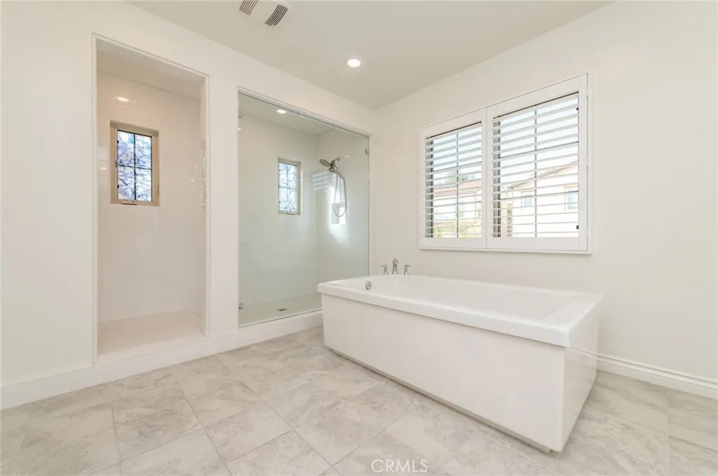 Corner-lot 5-bedroom, 4.5-bathroom residence in the prestigious 24-hour guard-gated Groves at Orchard Hills. Bright and airy with an open, modern floor plan and hard flooring throughout, including tile and luxury vinyl plank. The main level offers a private bedroom suite, expansive great room, and multi-panel sliding doors that seamlessly connect indoor living to the outdoor space. Gourmet kitchen features a large center island, top-of-the-line appliances, and a separate prep kitchen with sink, cooktop, and refrigerator. Upstairs, the primary suite showcases a walk-in closet, soaking tub, and separate shower, accompanied by three additional bedrooms and two bathrooms. Professionally landscaped oversized backyard with fruit trees and roses, plus owned solar panels for energy efficiency. Enjoy resort-style amenities including clubhouse, pools, parks, and playgrounds, all near award-winning schools, premier shopping, and dining.