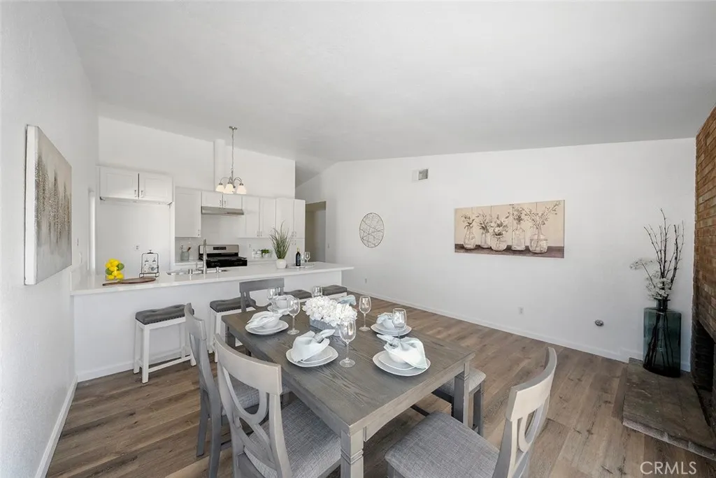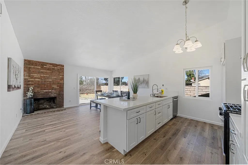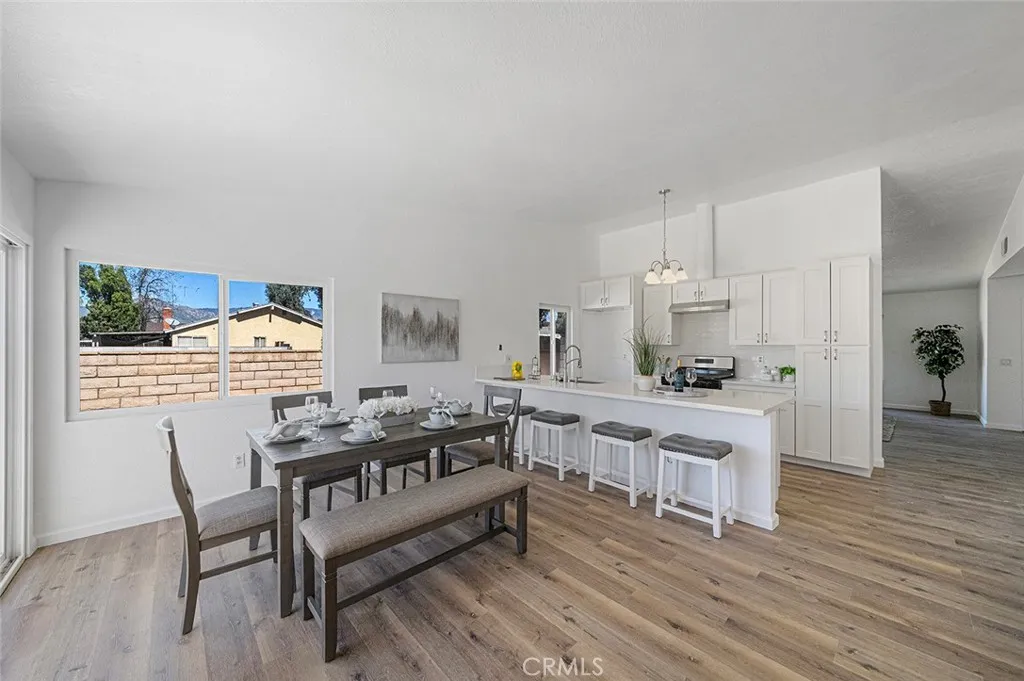 Set on a welcoming corner of a peaceful residential street app. Less than 1 mile from University of Redlands, this beautifully refreshed home blends comfort, style, & everyday convenience. With quick freeway access nearby, yet far enough away to enjoy the calm of the neighborhood, this is a place where coming home simply feels good. The living room greets you w/ warmth & natural light pouring through a large double-pane picture window. New luxury vinyl plank flooring runs throughout the home, creating a fresh & cohesive look, making the space feel instantly inviting. The home flows naturally into the kitchen/dining area, a versatile space that can easily serve as a second living room. A cozy fireplace tucked into the corner creates a welcoming focal point for gatherings or quiet evenings at home. The kitchen has been thoughtfully updated w/ white shaker cabinets featuring soft-close doors & drawers, elegant quartz countertops, & a peninsula w/ seating for four; perfect for casual meals, conversation, or morning coffee. Stainless steel appliances, including a new stove, hood, and dishwasher, complement the space, while a crisp white subway tile backsplash adds a classic yet contemporary finish. Down the hallway are three bedrooms, each continuing the homes refreshed style w/ updated flooring, windows, lighting, & paint. The hall bathroom has been beautifully renovated w/ a classic cast iron tub, modern cabinetry, contemporary tile, and built-in shelving for everyday bath essentials. The primary bedroom offers a peaceful retreat w/ two separate closets & sliding doors that op