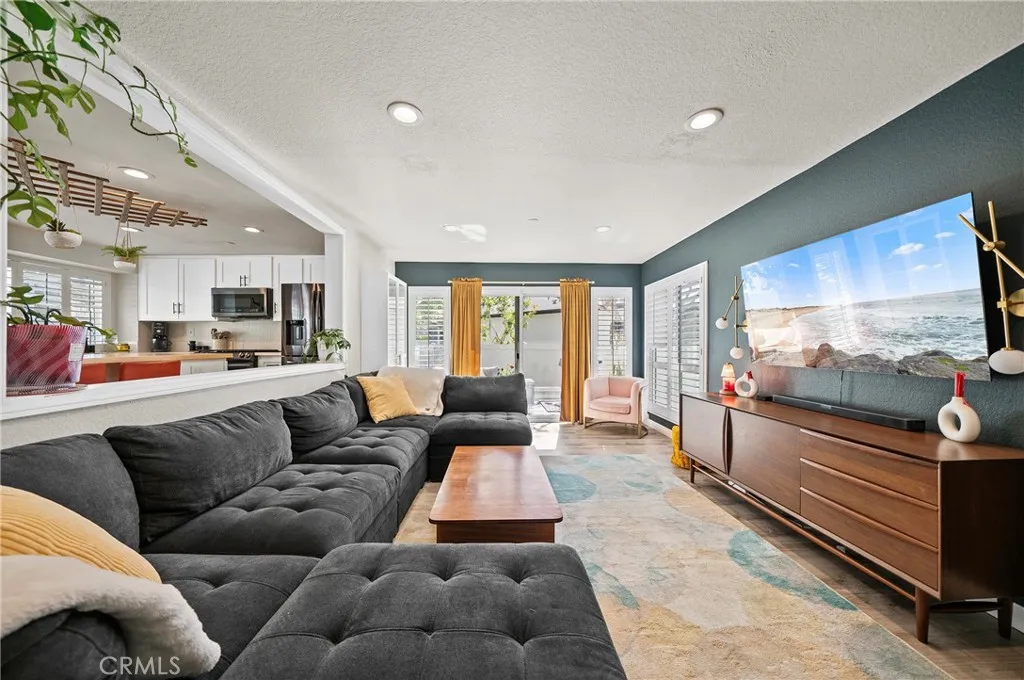 Bright and beautifully updated end-unit home offers the perfect blend of comfort, style, and walkable urban living. Tucked into one of the most private and peaceful locations within the community. Step inside to discover a light-filled open-concept main level designed for modern living. The spacious living and dining areas flow effortlessly into a fully remodeled kitchen, featuring an inviting island, newer countertops, abundant cabinetry, and high-end appliances installed in 2022. Natural light pours through newer energy-efficient dual-pane windows and sliding doors, while a sliding glass door opens to a refreshed private decka cozy outdoor retreat perfect for morning coffee, relaxed evenings, or entertaining. A convenient powder room completes the main living level, while direct access to the two-car attached garageequipped with washer and dryer hookupsadds everyday practicality. Upstairs, the oversized primary suite provides a peaceful escape with dual closets, a private vanity area, and a charming Juliet balcony where you can enjoy views of the Disneyland fireworks in the distancebeautiful to watch while upgraded windows keep the interior serene and quiet. The secondary bedroom features double-door entry and its own vanity space, ideal for guests, family, or a home office. A full bathroom completes the upper level. This turn-key home has been thoughtfully upgraded, including fresh interior paint, a brand-new HVAC system (2025), baseboards throughout and energy-efficient windows and doors. The HOA covers exterior maintenance, water, sewer, trash, and access to resort-sty