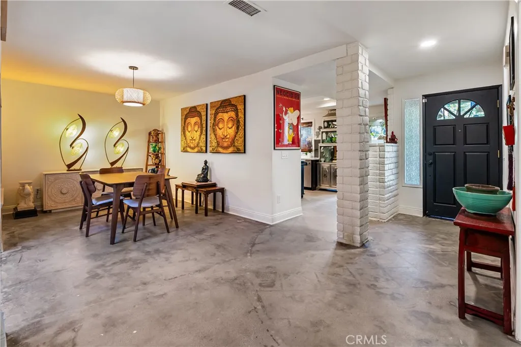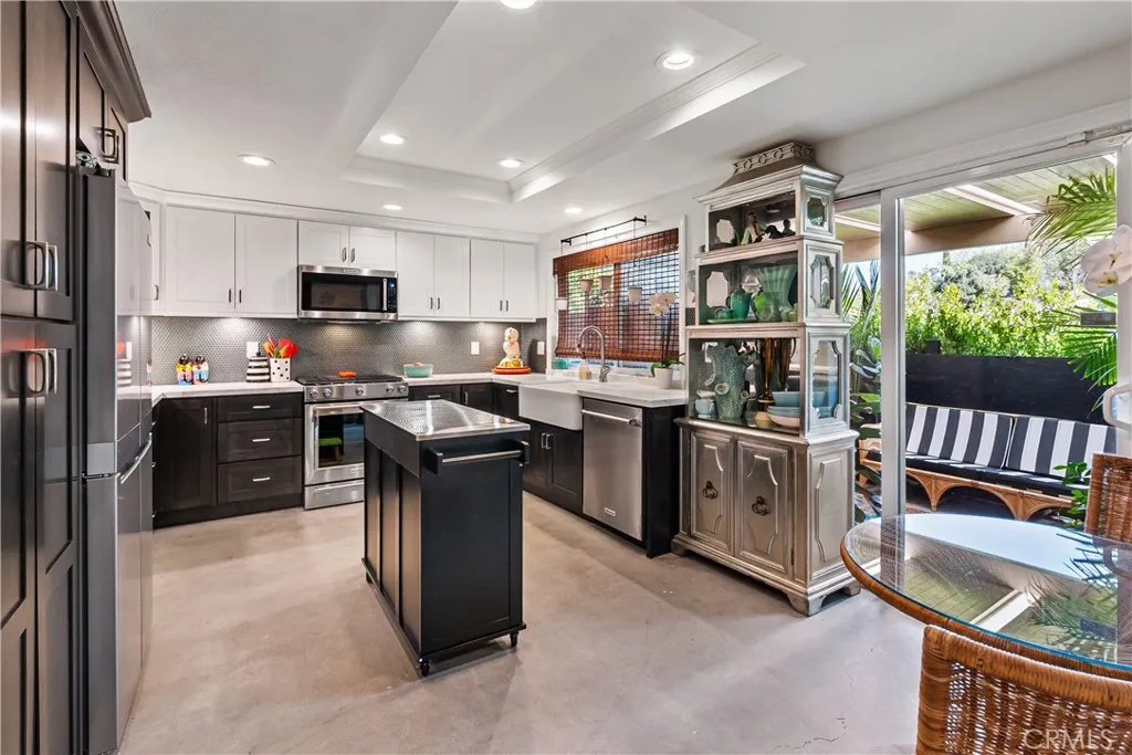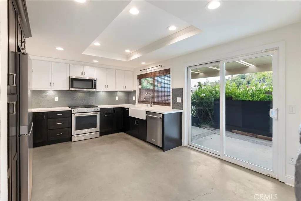 VICTORIA AREA! - PRICE IMPROVEMENT! CASUAL CAREFREE LIVING! This 2,030 sqft single-story townhome with a 2-car attached garage offers a worry-free, lock it and leave it opportunity for you to spend your time enjoying your life without constant home maintenance and upkeep. Having undergone a near-whole-house-renovation in late 2024, this home is in move-in ready condition! The upgrades were numerous and include: a fully-remodeled kitchen featuring quality cabinets with pull-outs, farmhouse sink, quartz counters, tasteful glass tile backsplash, KitchenAid stainless appliances, new garbage disposal and faucet; a complete remodel of all three bathrooms including vanities, counters, toilets, floors and tile work in tub/shower; new plumbing; new lighting including new fixtures, recessed and ceiling fans; new electric switches and receptacles; new interior paint throughout; easy maintenance diamond ground and polished contemporary concrete floors; a new water heater; new gutters, downspouts and exterior drains; and more! Located in a small enclave of 45 homes in the desirable Palm Terrace Townhomes community off Victoria Avenue, the monthly HOA fee covers more than most HOAs including: insurance on the physical structure, the roof, exterior paint and most siding repairs, the pool and bathroom facilities, access to the RV lot, weekly front yard landscaping and front yard water, as well as maintenance of the common areas. This home offers high ceilings, vast amounts of interior open space, natural light throughout, a spacious living room with gas fireplace, large separate dining are