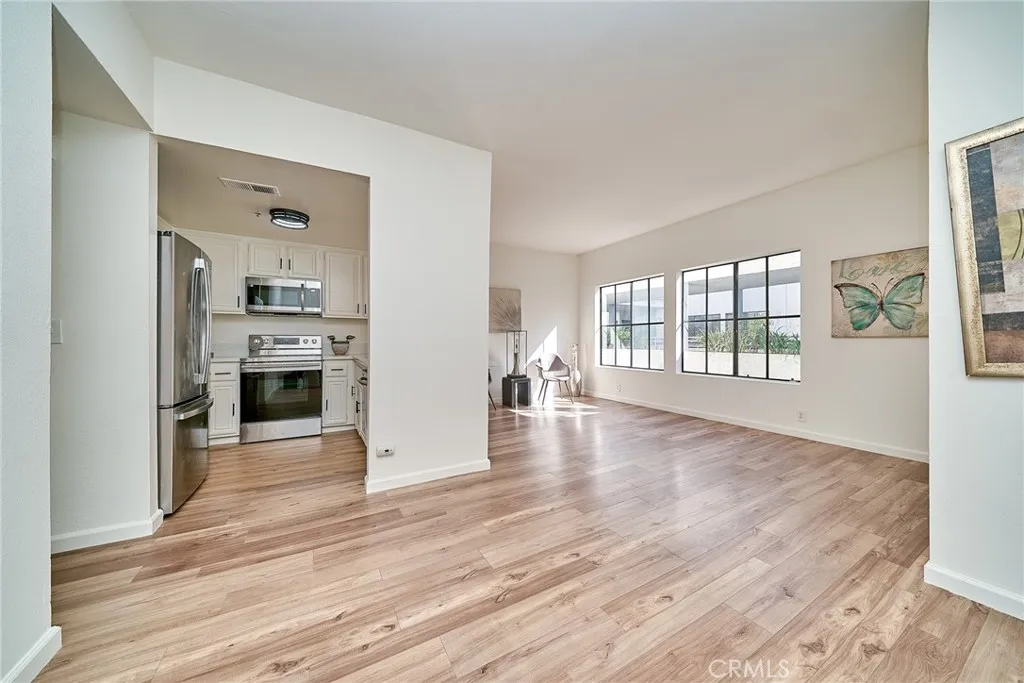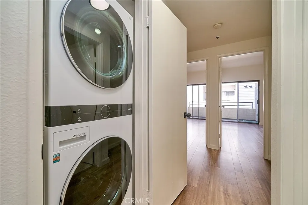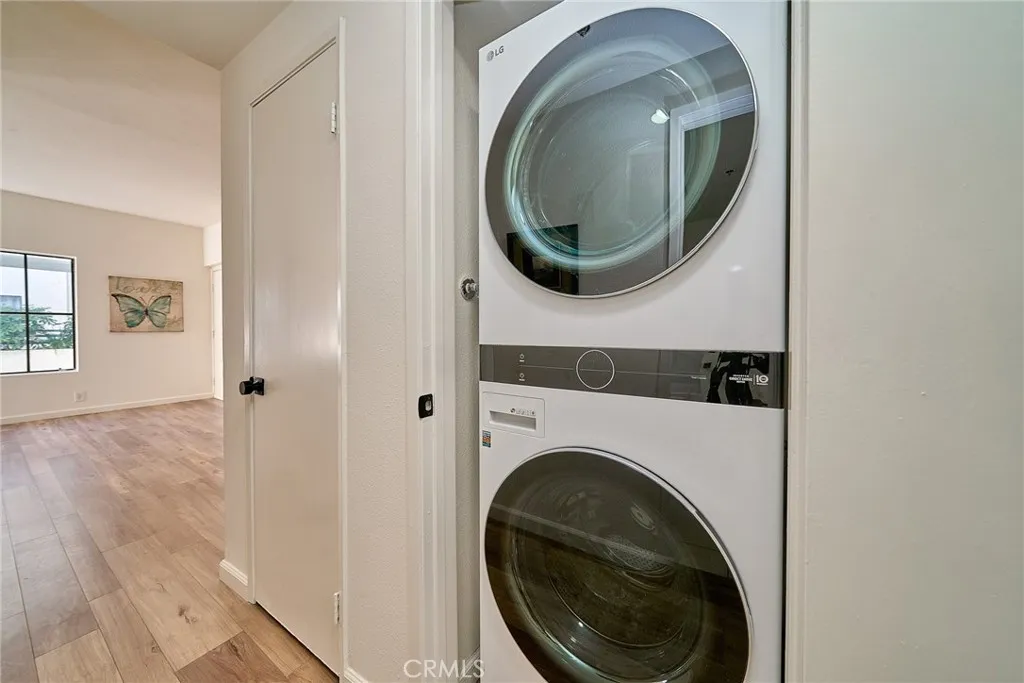 Beautifully remodeled 2-bedroom, 2-bath residence offering the ideal beach lifestyle. This bright and inviting home features a well-designed layout with spacious living areas, abundant natural light, and a comfortable open-concept feel. The spacious living room flows into the upgraded kitchen, featuring new quartz countertops, stainless steel appliances, and a new sink and faucet. Both bathrooms have been tastefully remodeled, and the home includes fresh interior paint and natural wood-design laminate flooring throughout. The hallway laundry area conveniently includes a newer stackable washer and dryer, neatly tucked away. Down the hall, the spacious en-suite primary bedroom offers dual wall closets, vanity cabinets, and a sliding glass door that opens to a private balcony. The second bedroom is equally spacious, featuring similar closet space and a vanity area with convenient access to the hallway bathroom. The unit includes 2 dedicated parking spaces with overhead storage in the subterranean garage. The secured complex offers modern cell-app and FOB access for entry to the parking areas, mailroom, and building. Residents enjoy low HOA dues and amenities including a community recreation room, a well-equipped gym, bike storage, and an open green outdoor space for entertaining. Ideally located just down the street from a community center and park, and only minutes from freeway access, downtown, and the beach. Enjoy nearby coastal amenities including restaurants, shops, bike trails, picnic areas, kiting, a skate park, and an on-sand restaurant.