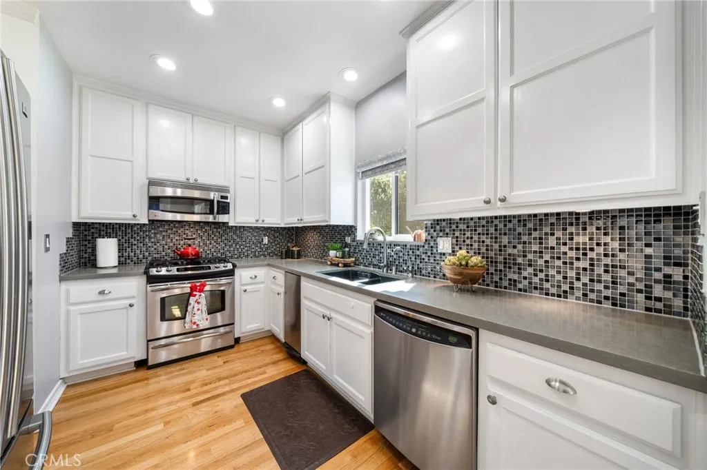 Rare end-unit townhome with mountain views and a private backyard retreat in the heart of Sierra Madre, just moments from downtown shops, restaurants, and the Sierra Madre Public Library. This light-filled Victorian-style residence offers beautiful hardwood floors throughout, timeless architectural charm, and an inviting indoor-outdoor lifestyle. The welcoming main level features a spacious living room with fireplace, plantation shutters, and abundant natural light. The inviting dining area showcases picturesque bay windows and custom built-in cabinetry, creating an ideal space for entertaining. The kitchen offers tall cabinetry, generous pantry storage, and designer countertops. A sliding glass door opens to a private deck that leads down to a fully enclosed backyardperfect for relaxing or enjoying Southern Californias indoor-outdoor living. Upstairs, the expansive primary suite features its own fireplace, walk-in closet, and tranquil treetop views. Both bathrooms have been beautifully renovated with quartz countertops and elegant tile finishes. A spacious secondary bedroom enjoys mountain views and convenient access to the updated guest bath. The ground level includes an attached two-car garage and approximately 250 sq ft of bonus space currently configured with built-in storage and laundry, offering flexibility for a home office, gym, hobby room, or creative studio. Morgan Court is an intimate and well-maintained community of just 16 townhomes set on over an acre of landscaped grounds, featuring green space, a charming gazebo, and guest parking. Ideally located in one of