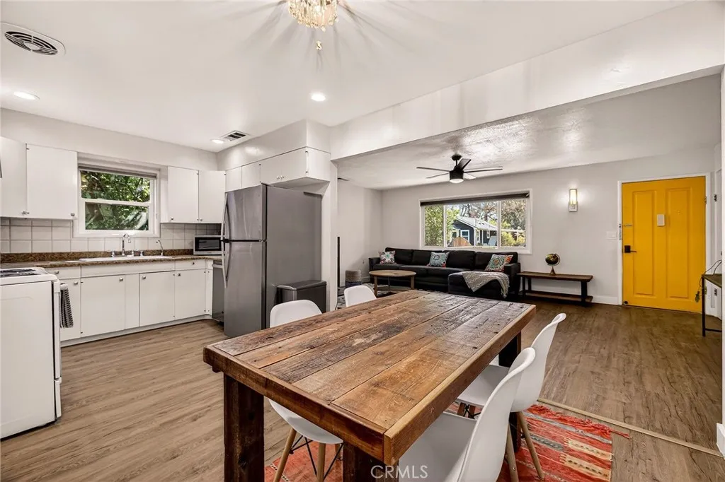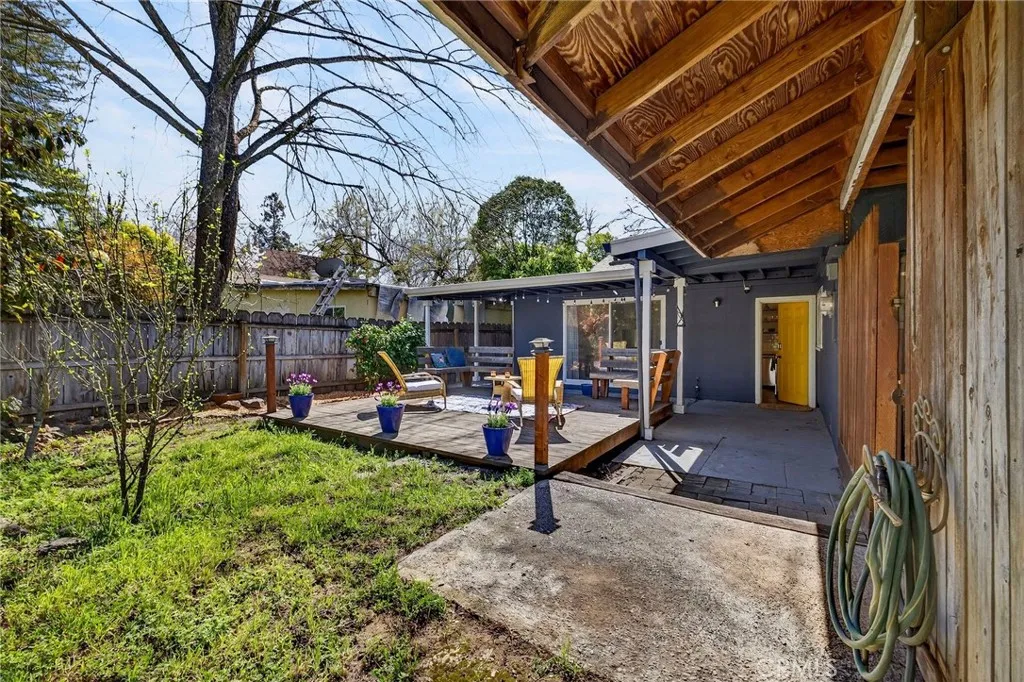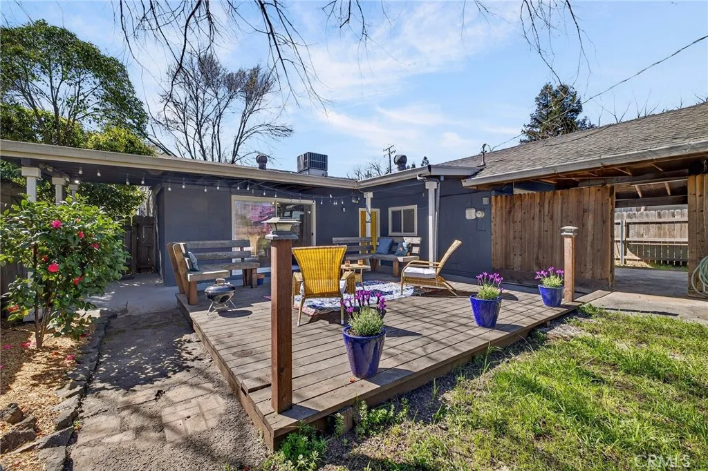 A rare Barber beauty renovated in 2022! This single family 3/2 home offers a rare and coveted floor plan that is perfect for those seeking to live in half the house while renting out the other half for passive income, AirBNB buyers (seller's previous annual income was $24,000 from the one bedroom unit alone!), or folks seeking a multi generational living arrangement! Located in the highly sought after Barber Neighborhood with a drought tolerant fully fenced front yard and just minutes to Downtown and CSU, Chico, this home's floor plan is one of a kind! The front portion of the house offers 2 bed/1 bath, a generous living area, full kitchen, full bath, an individual stackable washer and dryer, central heating and air conditioning, dual pane windows throughout and laminate flooring throughout. The back end of the home can be accessed through a conjoining door that can be locked off to separate both wings of the house for independent living. The back "unit" offers a roomy 1 bed/1 bath with an open concept designer kitchen that is just 3 years old and is open to the living area. This space is light, bright and updated throughout with a stainless steel dishwasher, oven, full fridge, vented exhaust fan and open concept shelving. A sliding glass door off the living area of the back unit leads to a spacious and inviting deck that overlooks a deep lot with plenty of room for an ADU! In fact, prior permits were completed and a survey are on file to expand this property further! The 1/1 back unit can be accessed through the main portion of the house OR through a designated gated path