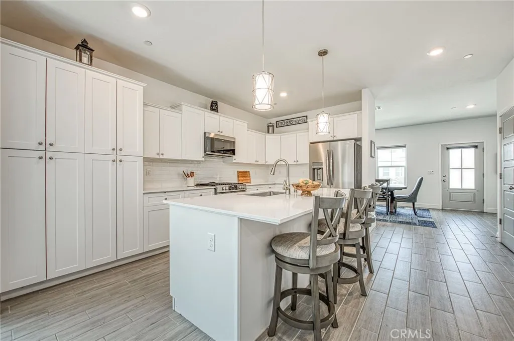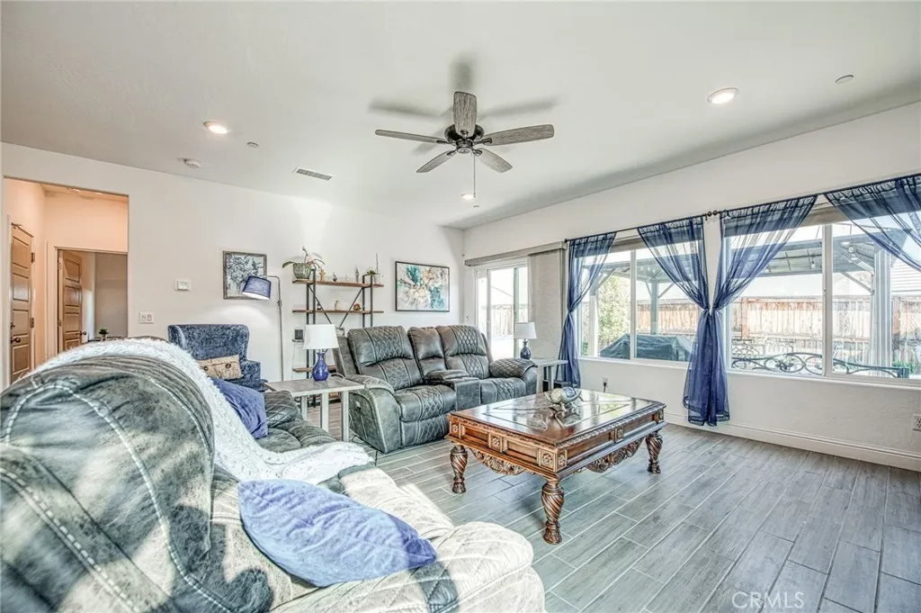 Welcome to this beautiful Lennar-built home (2022) located on a desirable corner lot in the award-winning Clovis Unified School District. This modern residence features a bright, open-concept floor plan designed for both everyday living and entertaining. The home offers 5 bedrooms and 3 bathrooms, including a highly sought-after downstairs bedroom and full bath, ideal as a second primary suite, guest room, or mother-in-law quarters. The main level showcases a spacious living area that flows seamlessly into the kitchen and dining space. Upstairs you'll find four additional bedrooms, two full bathrooms, and a versatile loft perfect for a home office, playroom, or media space. Step outside to a thoughtfully designed backyard featuring custom stamped concrete, retaining walls, and a stylish pergola, creating a low-maintenance outdoor retreat perfect for relaxing or hosting gatherings. Located in a highly desirable neighborhood that backs up to the Dry Creek Trail, youll enjoy easy access to scenic walking and biking paths, offering a peaceful, park-like setting right outside your doorstepperfect for exercise and outdoor enjoyment. Even better, this neighborhood has no HOA, giving you more flexibility and fewer monthly expenses. With its modern design, functional layout, and prime location near top-rated schools, parks, shopping, and trails, this move-in-ready home checks all the boxes.