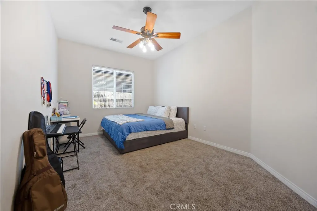 Welcome to San Trope, a gated community with a resort-style feel nestled among scenic fairways, lakes, and a charming central canal. This beautiful single-level 4-bedroom home offers the perfect blend of comfort, style, and convenience, with a functional and well-designed layout that places the primary suite on one side of the home and the secondary bedrooms on the other, creating added privacy for everyday living. The well-appointed kitchen features upgraded appliances, custom cabinetry, and a spacious island ideal for entertaining. The inviting living room includes a cozy fireplace, while plantation shutters throughout add timeless elegance. The primary suite serves as a peaceful retreat, complete with an en-suite bathroom and sliding glass doors that open directly to the backyard, creating seamless indoor-outdoor living. Pride of ownership is evident throughout this corner-lot home. Step outside to your private backyard featuring a covered patio, custom stamped concrete, and fresh landscaping, perfect for relaxing or entertaining. Additional highlights include newer carpet, newer A/C ducting, newer attic furnace, newer water heater, a dedicated laundry room, and a spacious 3-car garage with utility sink. Ideally located in a well-maintained and highly desirable community, with convenient access to parks, schools, shopping, and dining. *Seller is willing to pay up to 1% of the sale price to go towards buyers closing cost.*