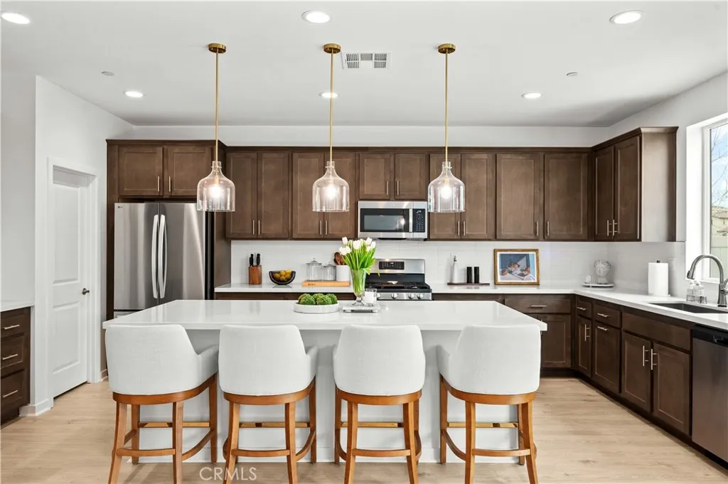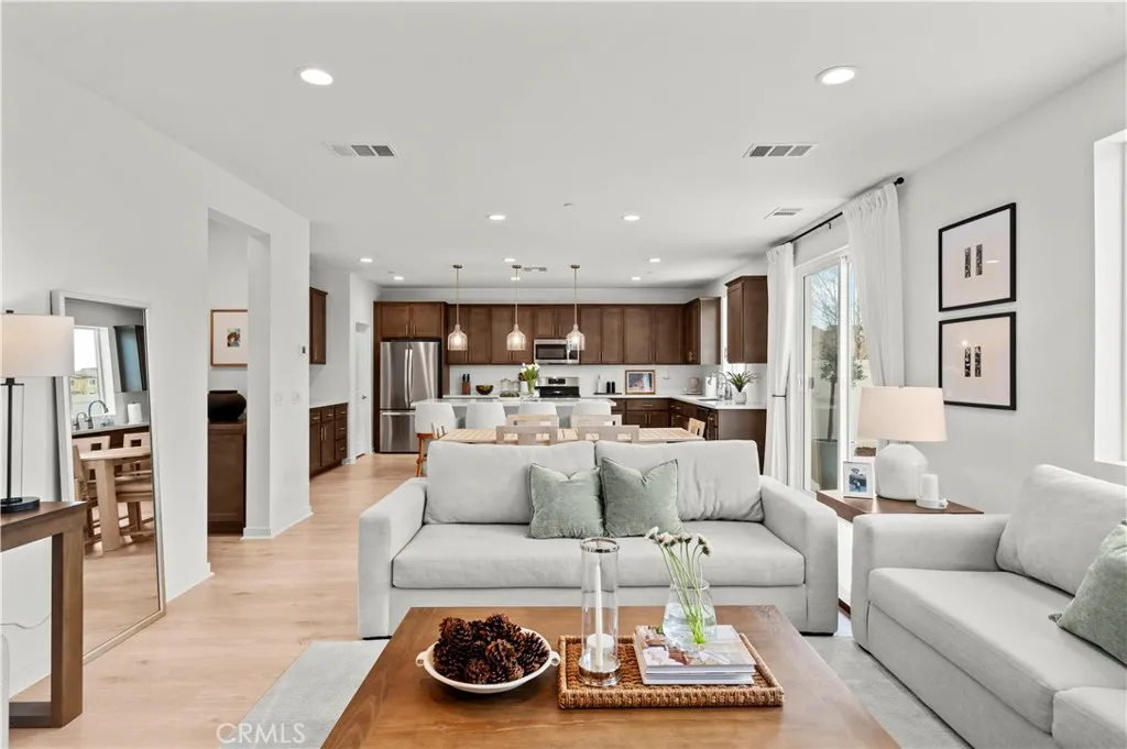 Tucked away in a private cul-de-sac within the highly sought-after Fairway Canyon community in Beaumont, this 2023-built residence offers an exceptional blend of modern elegance, comfort, and scenic surroundings. The property is fully landscaped, creating a polished outdoor environment that enhances both curb appeal and everyday enjoyment. Designed with a sophisticated open-concept layout, the home features approximately 2,362 sq ft of thoughtfully planned living space with 4 bedrooms and 3 bathrooms. The main level offers a convenient bedroom and full bath, ideal for guests, multi-generational living, or a private office. The expansive living area flows seamlessly into the kitchen and dining space, complemented by a spacious walk-in pantry that adds both style and functionality. Upstairs, the luxurious primary suite serves as a peaceful retreat, featuring dual walk-in closets and generous space designed for relaxation. Additional bedrooms are well-proportioned, while partial mountain and golf course views enhance the serene atmosphere of the home. Residents of Fairway Canyon enjoy a well-maintained HOA that includes high-speed internet and access to resort-style amenities, including a community pool, fitness center, clubhouse, meeting and conference rooms, parks, and recreational spaces. Ideally located near shopping, dining, schools, and convenient freeway access, this home presents a rare opportunity to experience refined living in a beautifully maintained, cul-de-sac setting. Financing Note: Property has an existing FHA loan with an approximate interest rate of 5.5%. Lo