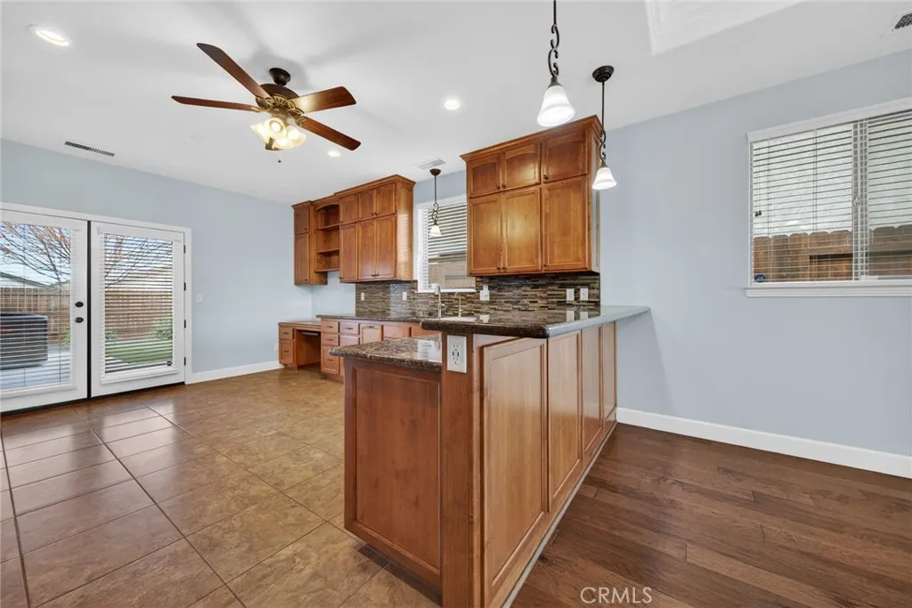 This beautiful Wildwood Estates home offers incredible sunrise and sunset views with immediate access to Wildwood Park, Upper Bidwell Park trails, and local schools. The location features extensive hiking, biking, and outdoor recreation right outside your front door. Inside, the beautiful open floor plan includes vaulted ceilings, engineered wood floors, and a natural rock fireplace. The upgraded kitchen boasts granite countertops, soft-close cabinetry, double ovens, and a large pantry. The master suite and guest bedrooms feature 9-foot ceilings and custom closet organizers. Additional highlights include an indoor laundry room, a whole-house fan, and a two-car garage with epoxy floors and alley entry. The exterior offers a low-maintenance landscaped front yard and a deep covered back patio with a gas grill hookup.