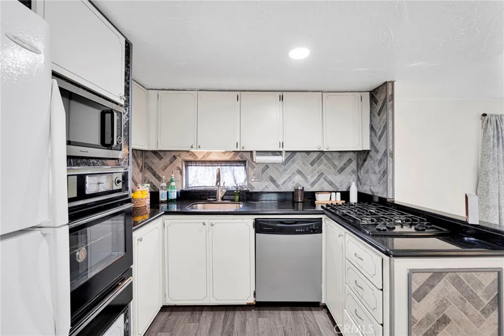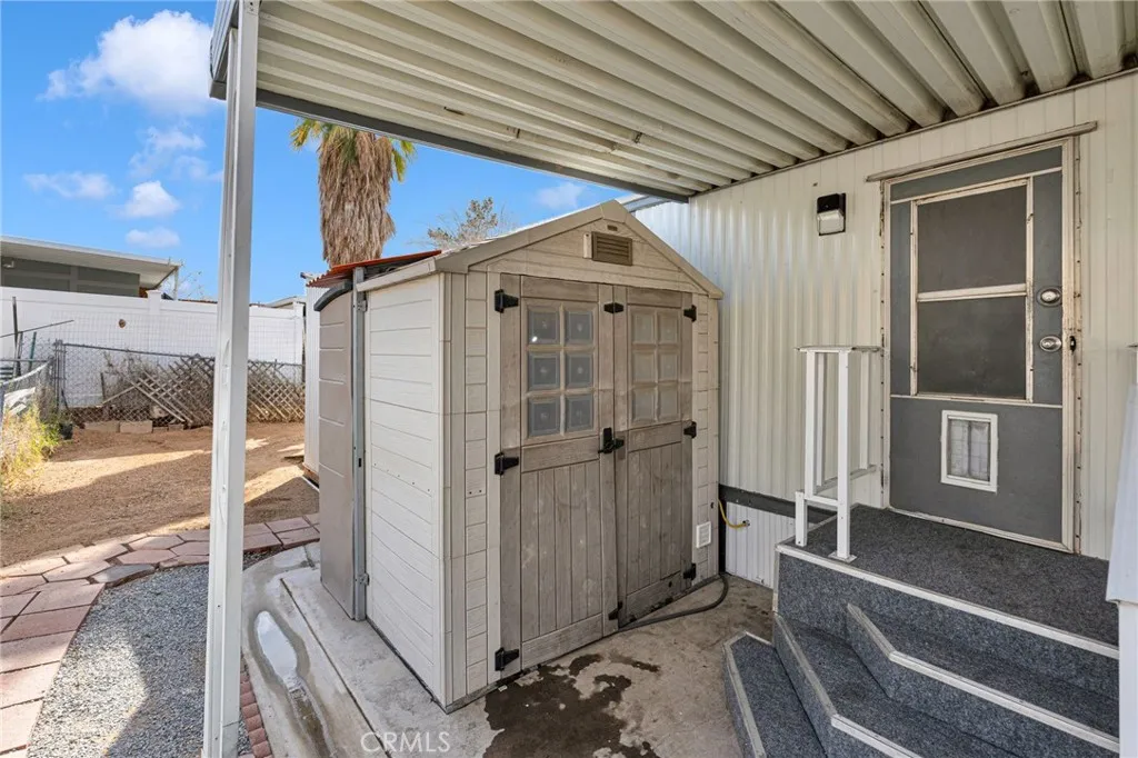 CALLING ALL COMMUTERS! Freshly remodeled and truly move in ready, this charming 1 bedroom, 1 bathroom home has been thoughtfully upgraded throughout for its new owner. Located in a FAMILY FRIENDLY PARK, this home offers both comfort and convenience just minutes from the I-15 freeway. Step inside to find NEW FLOORING THROUGHOUT, fresh interior and exterior paint, recessed lighting, and an inviting open feel. The beautifully remodeled kitchen features EXTENDED GRANITE COUNTERTOPS, a NEW SINK, built in microwave, dishwasher, and disposal, offering double the workspace and easy functionality. The bathroom has been fully updated with a NEW TOILET, SINK, GRANITE COUNTERTOP, AND WATERPROOF VINYL FLOORING, creating a clean and modern space. The bedroom is spacious and filled with natural light, providing a comfortable retreat. Additional upgrades include NEW DUAL PANE THERMAL WINDOWS INSTALLED APPROXIMATELY 6 MONTHS AGO, a NEW FRONT PORCH AND STAIRS, and NEW SKIRTING around the home. The roof is approximately 7 YEARS OLD. For year round comfort, the home includes a MINI SPLIT SYSTEM FOR HEATING AND COOLING, along with an EVAPORATIVE COOLER. The property also features TWO SHEDS, including a 110 SQ FT SHED ideal for a workshop, hobby space, or additional storage. Washer and dryer hookups are available, and the washer and dryer are included. Enjoy MAINTENANCE FREE LANDSCAPING, a FULLY FENCED YARD for added privacy, and a carport that comfortably accommodates at least two vehicles. The community offers a SWIMMING POOL AND PARK, providing great amenities for residents. AFFORDABLE SPACE