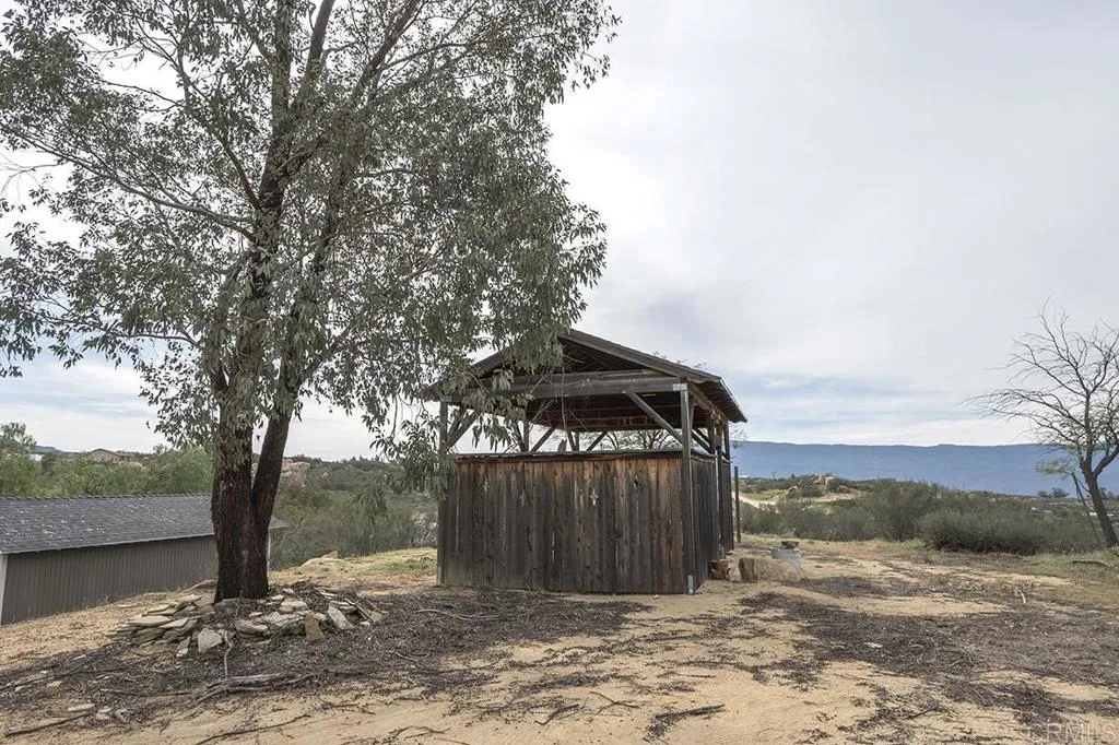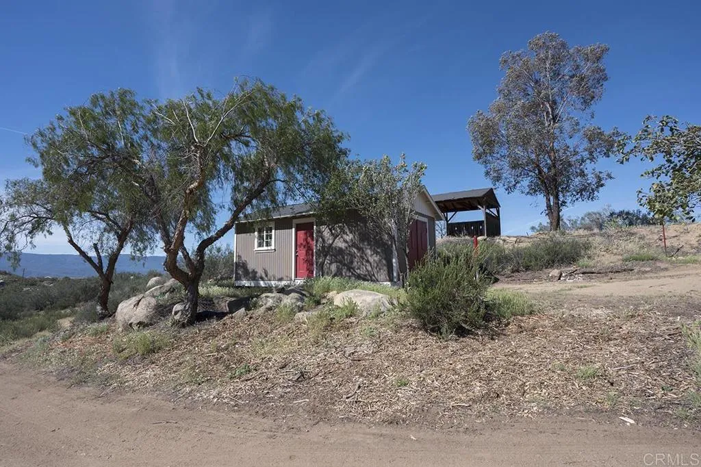 Discover wide-open space, privacy, and practical upgrades on this beautiful 5.3 acres property located just 1/4 mile off State Route 371. With easy access to Temecula, Anza, Idyllwild, and Palm Desert, this location offers the perfect blend of rural tranquility and regional convenience. The 1,152 sq ft 3 bed, 2 bath manufactured home features a new roof (2025), 6 inch insulated walls, wood stove, A/C unit in LR, and new waterproof vinyl flooring in main living areas. The land is highly usable with cleared defensible space for lower fire insurance, mature shade trees (recently trimmed), and two 5000 gallon water tanks. Water cost is a fixed $300/year for the shared well electricity costs. Additional buildings include a 40'x40' structure, 10'x24' garage with cabinets/workbench, 8'x12' storage building and well-built animal facilities. A separate level area offers a 24'x12' shade structure and private view pad. This property offers the space, privacy, and functionality that rural buyers crave-perfect for homesteading, animal lovers, hobbyists, or anyone seeking a peaceful lifestyle with room to grow.
