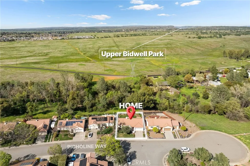 Situated at the end of Picholine Way with endless nature trails at your fingertips, this is the perfect place to call home! As you enter, you are greeted by a large vaulted ceiling with lots of natural light pouring in through the large picture window, a cozy gas fireplace, and new luxury vinyl flooring that runs throughout the living space and bedrooms. The split floor plan is ideal with the guest bedrooms and bathroom located on one side of the home and the primary suite on the other. In the primary bedroom there is a large walk-in closet, an en suite bathroom with a tub, dual sink vanity, and walk-in shower. In the kitchen there are solid surface counters, warm wood cabinetry, and a dreamy garden window that looks out on the backyard and Little Chico Creek. The yard is unbeatable with direct access to the creek allowing you to immerse yourself with nature. You can enjoy the tranquil sounds of the creek from your back patio while sipping your morning coffee or walk out your front door and be on a trail in a few steps. Other notable features include a tile roof, indoor laundry, an abundance of storage, and mature landscaping including a lemon tree and olive tree. Being located at the end of the street all while being close to schools, Mariam Park, and shopping, makes this the perfect blend for Chico living.