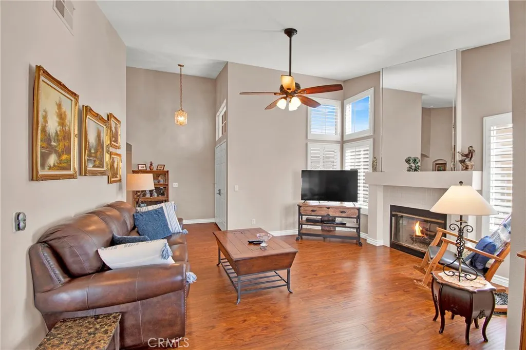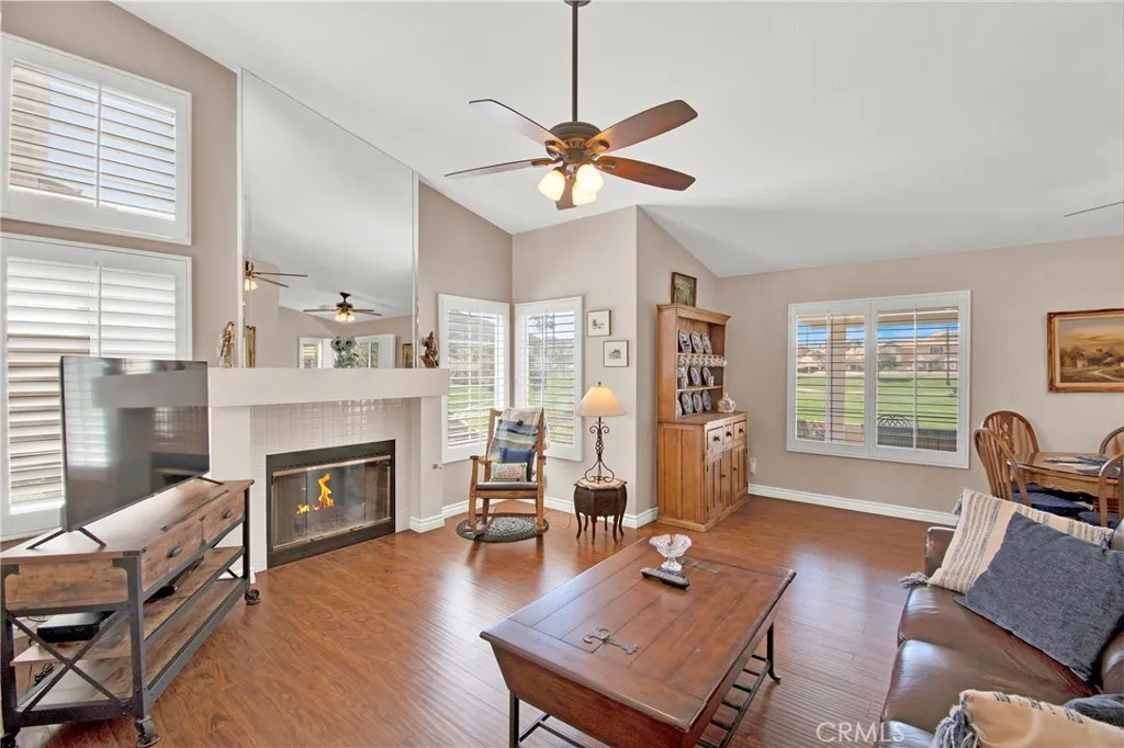 GOLF COURSE 'PEBBLE BEACH' CONDO (Single Level 1,390 Sq Ft), Located in Sun Lakes Country Club, a 55+ Luxury, Active Adult Golf Community, on the 18 Hole Championship Golf Course - NO MELLO ROOS for Lower Taxes. Perfectly Perched above the Championship Golf Course with Panoramic Golf Course and Mountain Views. Approx 1390 SF, 2 BD, 2 BA, Featuring: a Living Room with Fireplace, Cathedral Ceilings, Spacious Primary Bedroom w/Walk In Closet, Large Guest Bedroom. Upgrades include: Neutral Laminate Flooring; Corian Kitchen Counters with Seamless Corian Sink, Plantation Shutters Throughout, AlumaWood Patio Cover, Original Air Conditioner, Furnace Replaced. Refrigerator, Washer, Dryer are All Included. Furniture is Available........ Sun Lakes Country Club goes beyond just a place to live - It's a vibrant community designed to keep you Active & Engaged, offering: TWO 18-HOLE GOLF COURSES with 2 Pro Shops, THREE Clubhouses, TWO Restaurants, Bar & Lounge, Tennis, PICKLEBALL COURTS, Pools (Including Large Indoor Pool), Jacuzzi Spas, THREE Fitness Centers & Fabulous Planned Activities Offered on a Daily Basis. There are 80+ Social CLUBS, including: Dancing, RV Club, Yoga, Table Tennis, Cards, Bocce Ball, Bowling, Car Club, Drama/Theatre Club, Sewing, Tennis, Knitting, Bingo, Travel, Quilters, Art League, International Culture, Genealogical Society, Garden, Photography, Travel, and a lot MORE .... If that's not Enough, Add TRIPS AND TRAVEL EXCURSIONS scheduled all year long. Association Dues INCLUDE CABLE TV & INTERNET - The community is Located Close to Casinos, World Famous Shopping