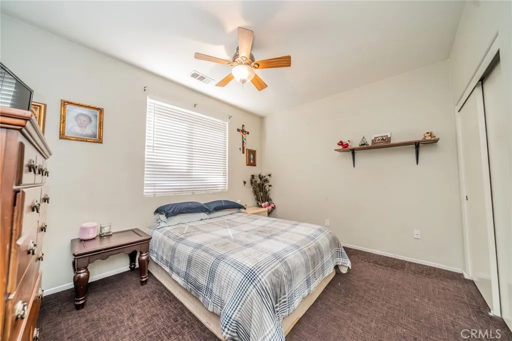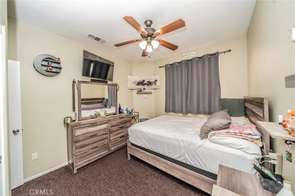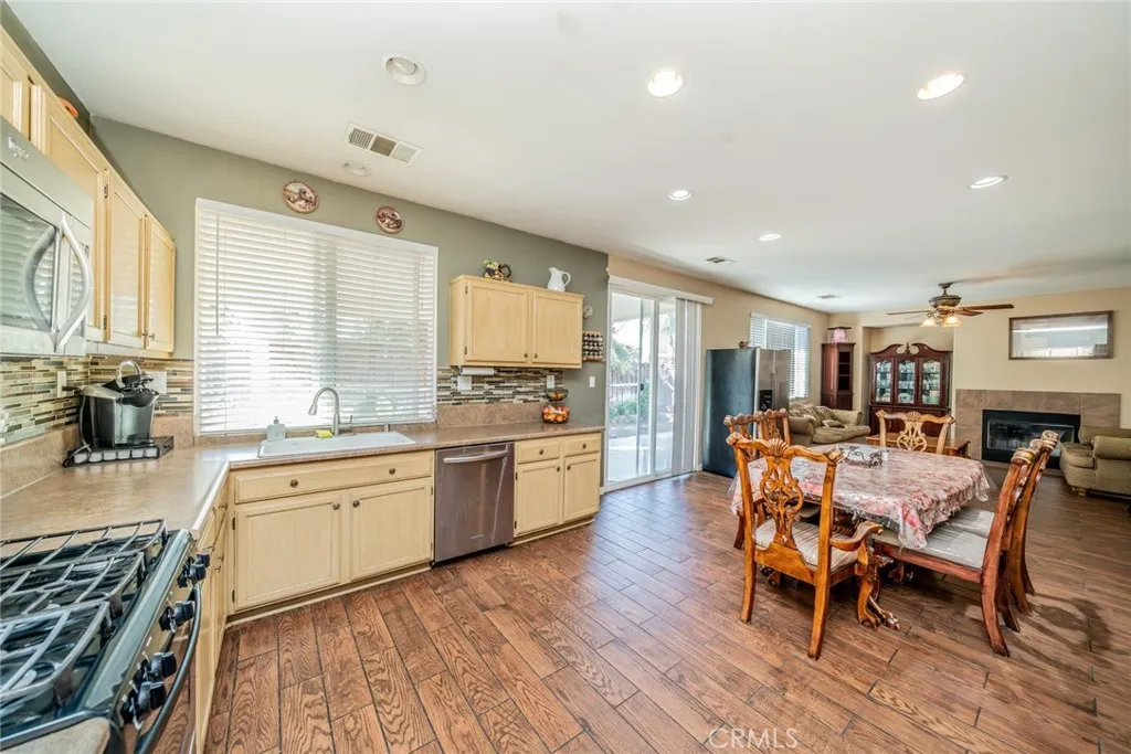 Welcome to this 3 bedroom 2 bath home with a Gorgeous open floor plan that has plenty of cabinets space, beautiful backsplash and granite counter tops in the kitchen. There is a formal entry, dining room, living room and all bedrooms have ceiling fans. You have recessed lightening throughout the home. The master bedroom has a huge walk-in closet and is separate from the other two rooms. you also have a laundry room and a New Water Heater! The front yard comes with a wide driveway, for those days that you have gatherings you will have plenty of space for your guests. This home is great for first time home buyers or if you are looking to downsize. You will save money on water as there is no grass in the front yard and the house has Tesla solar panels which will save you money on electricity! The back yard has aluma wood patio this will be great for barbecues and to enjoy the backyard with family and friends. Come see this beauty!