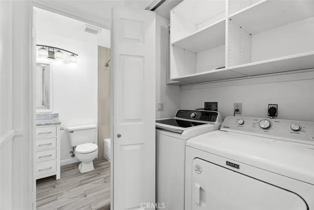 A beautifully maintained 2-bedroom, 1.75-bath condo in the highly desirable Laurelwood community of Anaheim Hills. This thoughtfully designed home offers the convenience of single-level living, with all main living spaces on one floor, plus a private elevated entry that enhances privacy. Inside, the bright and light open-concept layout is filled with natural light, seamlessly connecting the living room, dining area, and kitchen. The home features laminate flooring throughout along with fresh interior paint, creating a clean and inviting living space. The primary suite serves as a relaxing retreat with a remodeled bathroom. Step outside to your private balcony, perfect for morning coffee or relaxing in the Southern California breeze. Additional highlights include an attached two-car garage with ample storage. Residents of Laurelwood enjoy resort-style amenities including a pool and spa. Ideally located near Savi Ranch shopping and dining, parks, and major commuter routes, this home offers the perfect blend of serenity, convenience, and Anaheim Hills living.