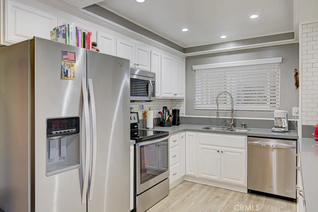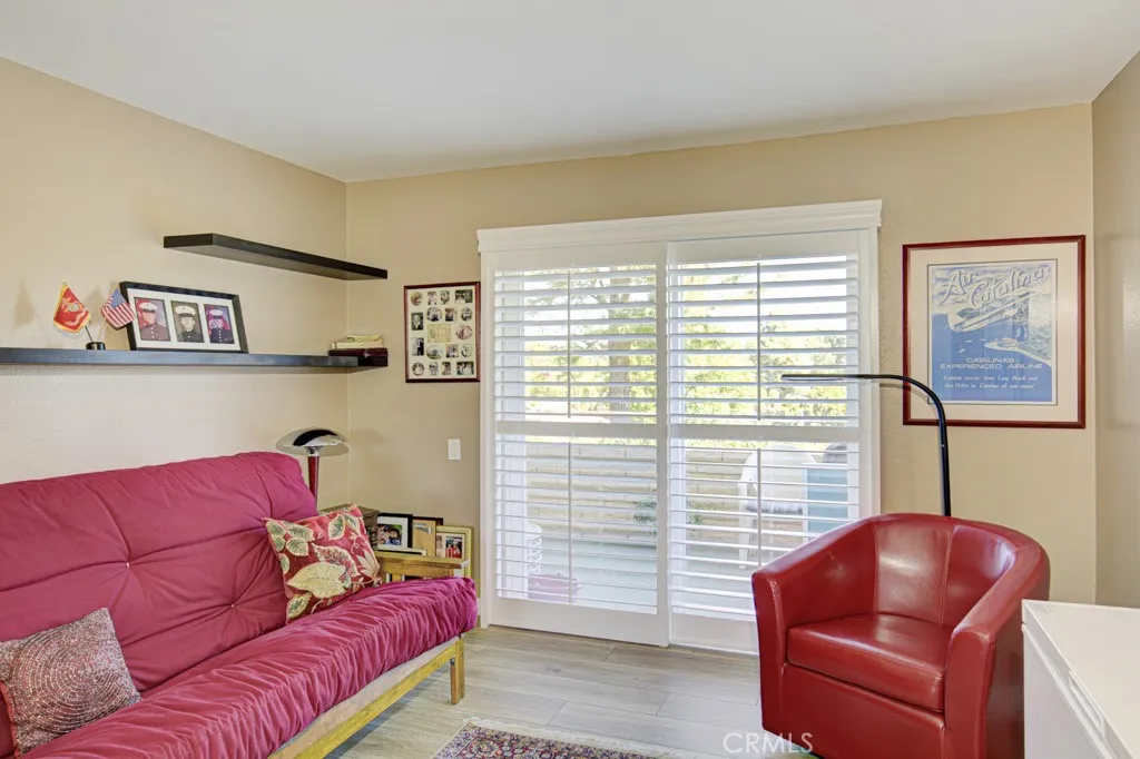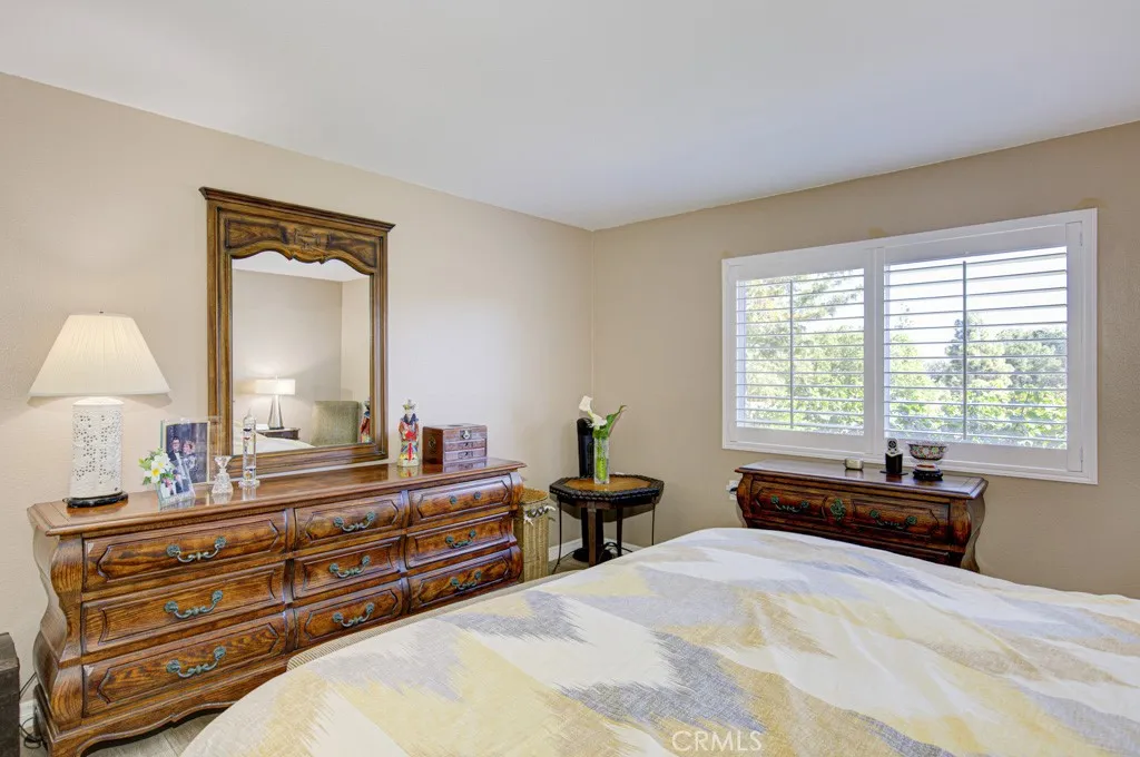 Welcome to 5350-B Algarrobo a spectacular two-bedroom, two-bath CASA VISTA residence in the Laguna Woods senior community. This remodeled property features countless upgrades and is located in a lovely neighborhood far from busy roads and noisy highways. The partially covered patio, accessible via glass sliders in both the living room and guest bedroom, is the perfect location for outdoor entertaining, dining and relaxing. The view is simply magnificent: beyond the narrow lawn and split rail fence is a panoramic neighborhood view featuring hills and mountains and countless trees in the distance. The kitchen is simply gorgeous and is loaded with bonus features including quartz countertops on updated cabinetry, an attractive tile backsplash, soft-close doors and drawers, lazy susan, built-in trash/recycling drawer and stainless-steel appliances. The kitchen has ample cabinet storage. The primary bedroom suite features a walk-in closet. The versatile guest bedroom could also serve as a home office, workout area, sewing room or arts and crafts studio. Both bathrooms have updated cabinetry and quartz countertops. There is a tub/shower combo in the primary bathroom and a shower stall in the guest bathroom both with grab bars. Additional features throughout this highly upgraded home include smooth ceilings, crown molding and baseboards, recessed lighting, plantation shutters, dual-pane windows and attractive manufactured wood flooring. A stackable washer/dryer is conveniently located in a hall closet. The nearby assigned carport has large upper and lower storage cabinets. This r