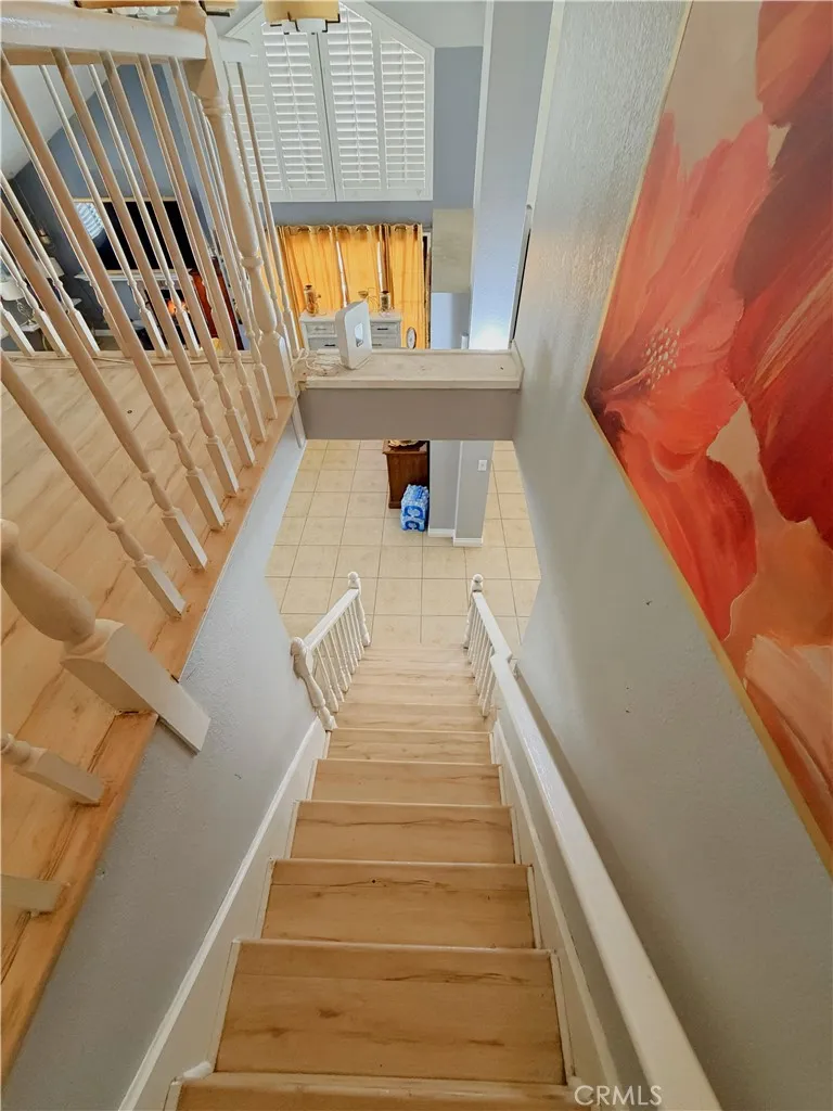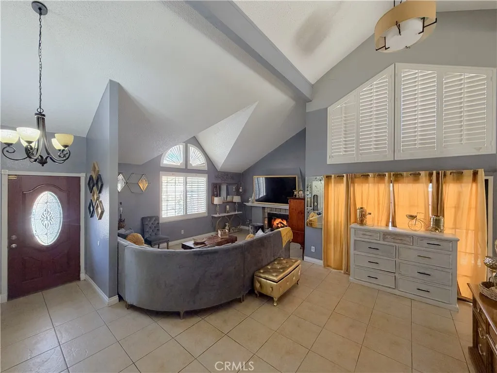 A stunning remodeled home that truly stands out! This beautifully updated single-family residence offers 4 bedrooms and 3 bathrooms with approximately 2,175 square feet of living space on a generously sized lot. Located on a quiet cul-de-sac, the neighborhood reflects a strong sense of pride of ownership throughout. Upon entry, you are welcomed by an open floor plan with vaulted ceilings and abundant natural light that enhances the spacious feel of the home. The formal dining room is currently utilized as a home office but could easily function as a fifth bedroom if desired. The living room features a cozy gas fireplace, while tile flooring extends throughout the main level, with the exception of the downstairs bedroom, which features wood-laminate flooring. The spacious kitchen is ideal for cooking and entertaining, offering ample cabinetry and a comfortable eat-in dining area. All four bedrooms provide generous space, including the primary suite with its own private bathroom and dual sinks. The backyard is perfect for entertaining and includes a low-maintenance turf lawn for easy upkeep. Additional highlights include an attached two-car garage with direct access and laundry hookups, making this home both practical and inviting.