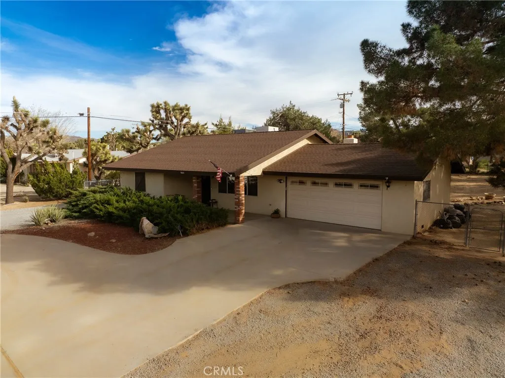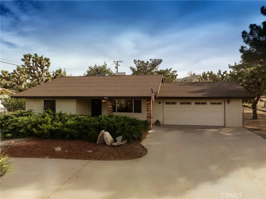 Welcome to 56547 Navajo Trail, a peaceful Yucca Valley retreat where wide open skies, quiet surroundings, and the beauty of the desert create a sense of calm the moment you arrive. Set on an expansive 19,704 square foot corner lot, this 2-bedroom, 2-bath home offers approximately 1,451 square feet of living space with a layout that feels both comfortable and inviting. Inside, the open concept kitchen flows into the family room, creating an easy, connected space for slow mornings, everyday living, and relaxed entertaining, while the formal living area offers an additional place to gather, unwind, or simply enjoy the stillness of home. Outside, the circular driveway adds charm, convenience, and curb appeal, welcoming you into a property that feels spacious, peaceful, and full of possibility. Whether you're searching for a full-time residence, a quiet weekend escape, or an investment in the high desert, this home offers the kind of setting that invites you to slow down, spread out, and enjoy the natural beauty of Yucca Valley. Home also has brand new HVAC system.