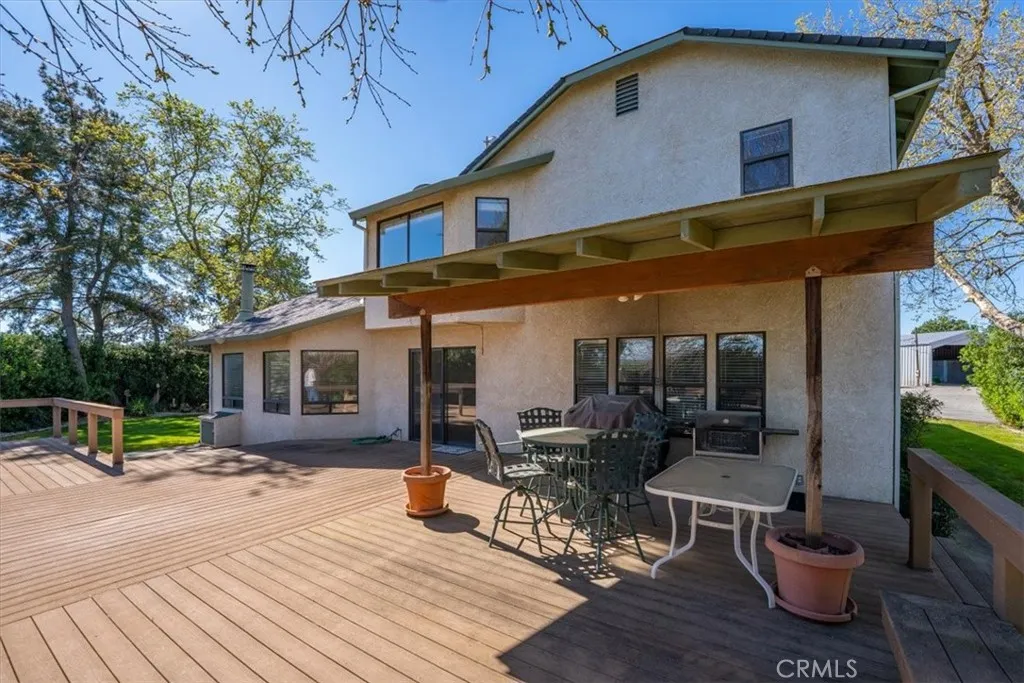 Set on 16.8 usable acres, this Corning property offers a rare combination of comfortable living space, productive ag ground, and the privacy of true country living. The 3-bed, 2-bath, 2,484 sq. ft. home features fresh interior paint and new carpet, giving it a clean, move-in-ready feel. A sunken living room with a wood stove creates a warm central gathering space, while the eat-in kitchen and separate dining area provide flexibility for everyday meals and larger gatherings. A dedicated laundry room adds convenience, and a large deck off the back of the home offers the perfect outdoor space for relaxing or entertaining. The primary suite is generously sized, offering a large walk-in closet, a laundry chute in the master bath, and a private balconyan ideal spot to enjoy quiet mornings or evening views. The homes layout blends practical comfort with room to grow. The land is well-balanced and highly functional, with approximately 8.12 acres of irrigated pasture fully fenced for livestock and approximately 6.27 acres of olives, all supported by an ag well. Whether for livestock, orchard use, or expanding an existing operation, the acreage is set up for productivity and versatility. Outbuildings add real value, including a shop, a covered RV storage area, and an additional covered equipment storage structure, providing ample space for tools, vehicles, and ag needs.