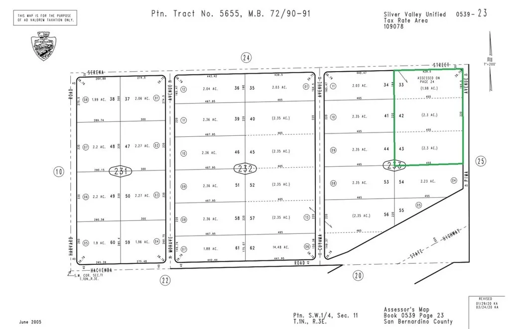 Prime 32.5+ Acre Development Opportunity Newberry Springs Unlock the potential of this expansive 32.95-acre property strategically located along the Southbound Interstate 15. With over 50,000 average daily traffic passing by, this site offers unparalleled exposure for commercial or specialized residential use. Key Property Highlights Size & Layout: Approximately 32.9584 acres, already subdivided into 15 individual lots. Zoning: Zoned as Rural Living (RL), providing a flexible foundation for various projects. Location: Situated at approximately 39501 Cuyama Ave, Newberry Springs, CA 92365 near the corner of Cuyama St and Serena St. Topography: Features a level, rectangular lot with stunning valley views. Development Potential The propertys unique positioning and size make it an ideal candidate for: Commercial Ventures: Motel, hotel, or a truck stop extension. Infrastructure & Tech: EV charging stations, cellular towers, or electronic billboards. Residential/Agri: A large ranch estate or a mobile home setup with room for cattle and livestock. Utilities & Infrastructure Electricity: Available on Hacienda Dr. Water/Sewer: Property will require a water well and septic system. Access: Direct access with high visibility from the I-15 freeway.