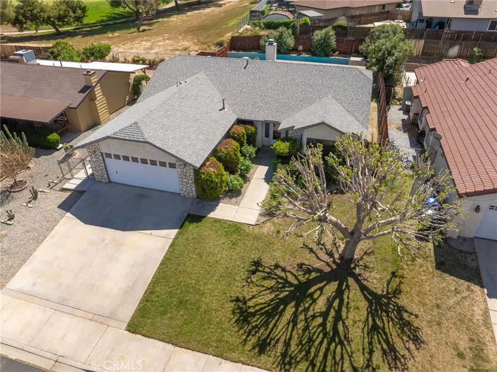 Life moves fast but here, it has a way of slowing down in all the right ways. Mornings begin with sunlight pouring through the bay windows of the breakfast nook, coffee in hand as you look out over your pool and the peaceful backdrop of the golf course beyond. Its a space that naturally brings the outdoors in and makes everyday moments feel just a little more special. The heart of the home is open and connected, where the kitchen, dining, and living areas flow together with ease. The wraparound kitchen counter offers space to gather, whether its a quick breakfast before the day begins or conversation that lingers into the evening. Just beyond, the living room centers around a warm corner fireplace, while French doors invite you outside creating that seamless indoor-outdoor lifestyle Southern California is known for. Step into the backyard and youll understand what makes this home truly special. A private retreat designed for both relaxation and connection featuring an in-ground pool, covered patio for shaded afternoons, and an easy-care turf area perfect for play. With the golf course just beyond your fence line, theres a sense of openness and calm thats hard to find. Inside, the home continues to offer flexibility for the way you live today. A separate den with vaulted ceilings, large bay windows, and built-in storage creates the perfect home office, reading space, or even a potential fourth bedroom. The primary suite is spacious and inviting, complete with vaulted ceilings, its own private bath with walk-in shower, and direct access to the backyard ideal for quiet mo