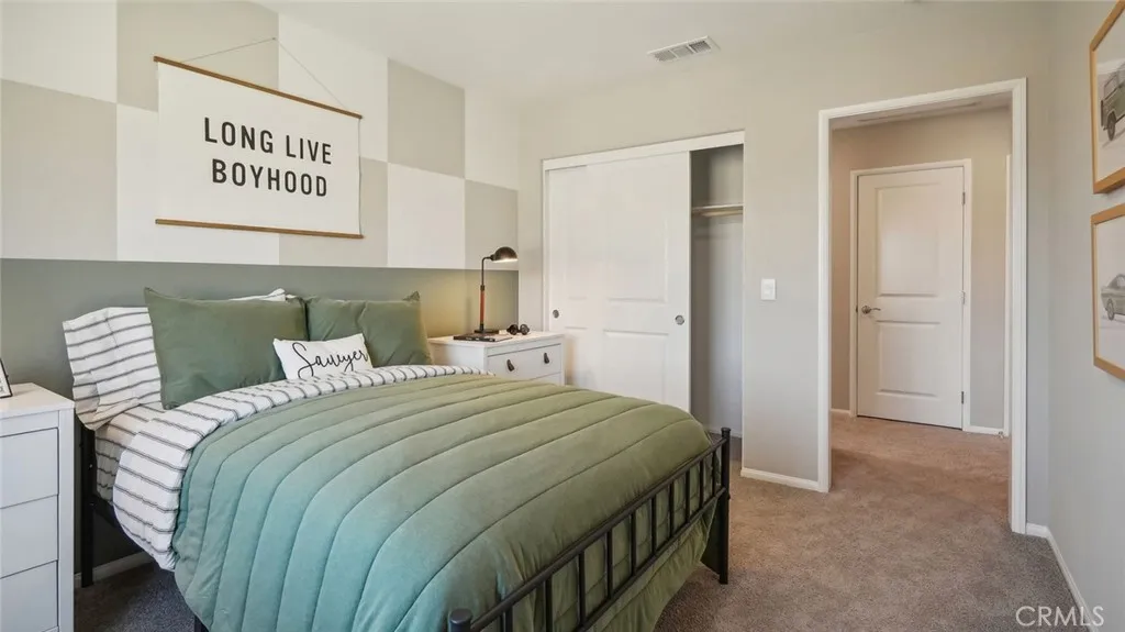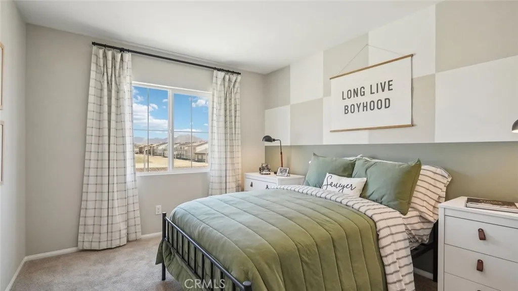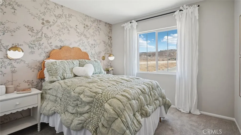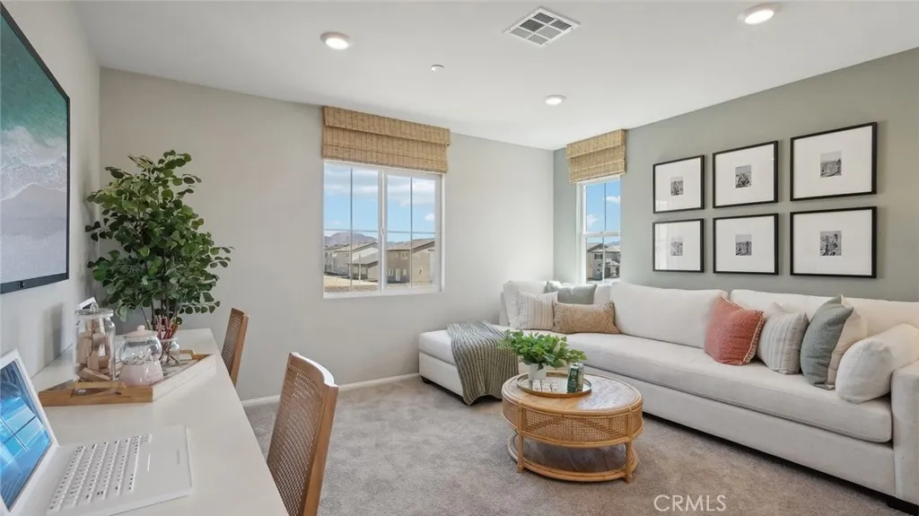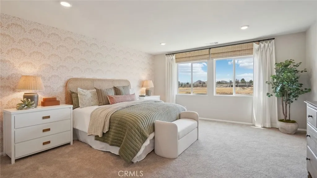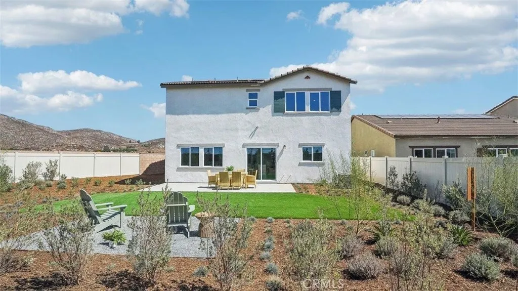 This 2,311-square foot California Spanish facade two-story home, has 5 bedrooms, 3 bathrooms. One of the bedrooms with a walk-in closet and full bathroom is DOWNSTAIRS. The eat in kitchen island area has Bianco Tiza Quartz counters, built-in stainless-steel appliances and a pantry closet. There is Alto (Gray) shaker-style cabinetry throughout, lots of included recessed lighting, plush carpet in bedrooms, closets, and stairs, and vinyl in main living areas. Buyer still has time to select flooring colors! Upstairs is a primary bedroom with ensuite bathroom and walk-in closet, 3 additional bedrooms and full bathroom, loft, and a laundry room. There is also a direct-access 2-car garage PRE-PLUMBED for an electric car! This truly modern home has all the Smart Home features you would expect and, is landscaped and irrigated in the front yard. The community is situated close to park and freeway access. This home will be ready to move in June of 2026.