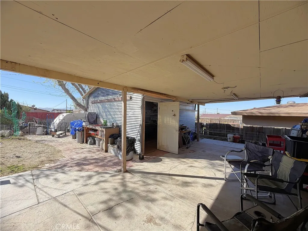Charming and well-maintained 3-bedroom, 2-bath home offering 1,471 square feet of comfortable living space and plenty of versatility! Originally featuring a single-car garage, the space has been thoughtfully reconfigured into multiple storage areas, including an oversized indoor laundry room with abundant built-in shelvingperfect for organization and functionality. The home offers a spacious layout with a cozy living room highlighted by a pellet stove fireplace, creating a warm and inviting atmosphere. The kitchen features granite countertops paired with beautifully maintained original cabinetry, blending character with modern touches. Enjoy year-round comfort with central heating and air conditioning. An enclosed back patio provides additional usable space and convenient access to the former garage area, making it ideal for hobbies, storage, or workspace needs. Step outside to a fully fenced backyard filled with grass and a variety of mature fruit trees, including mulberry, fig, peach, apricot, and even grapevinesperfect for those who enjoy gardening or outdoor living. Additional features include a 16x16 workshop located just off the covered patio and a drive-through gate with access to the rear easement for added convenience. This lovingly cared-for home has been the heart of many cherished memories and is now ready for its next chapter. Come see the potential and make it your own!