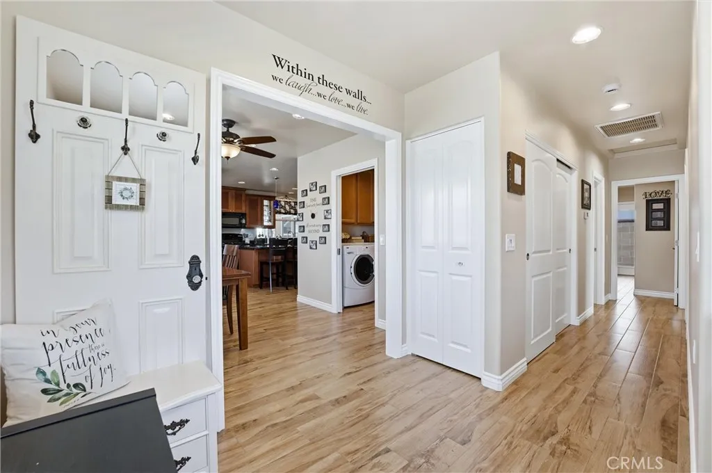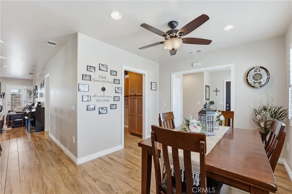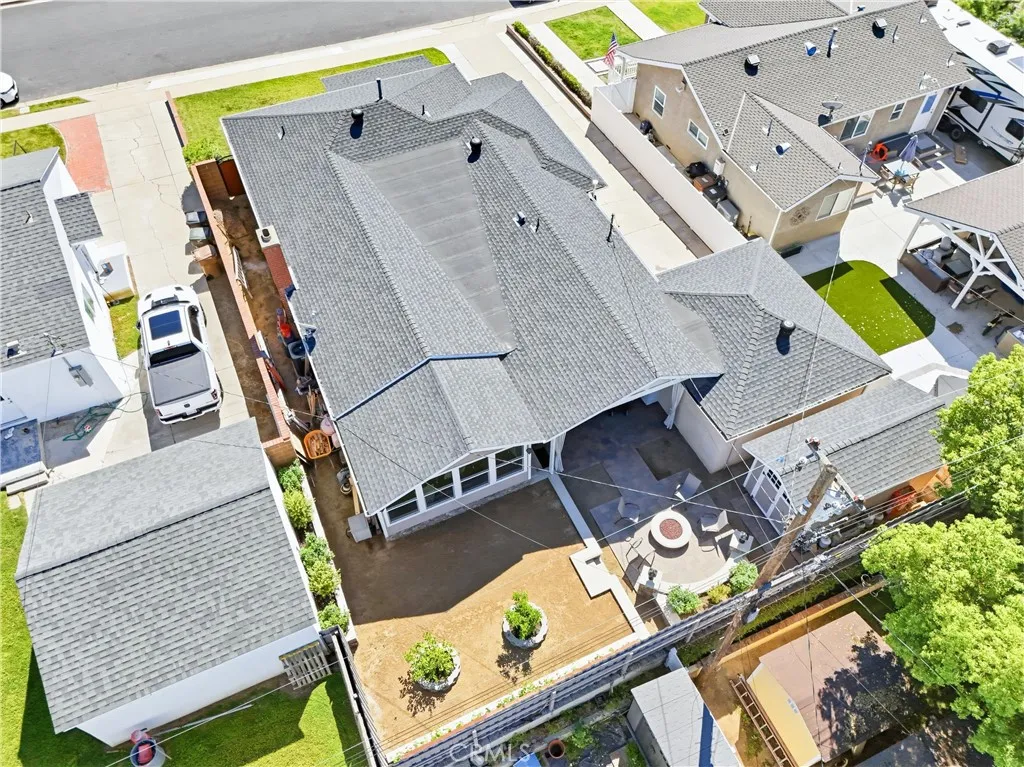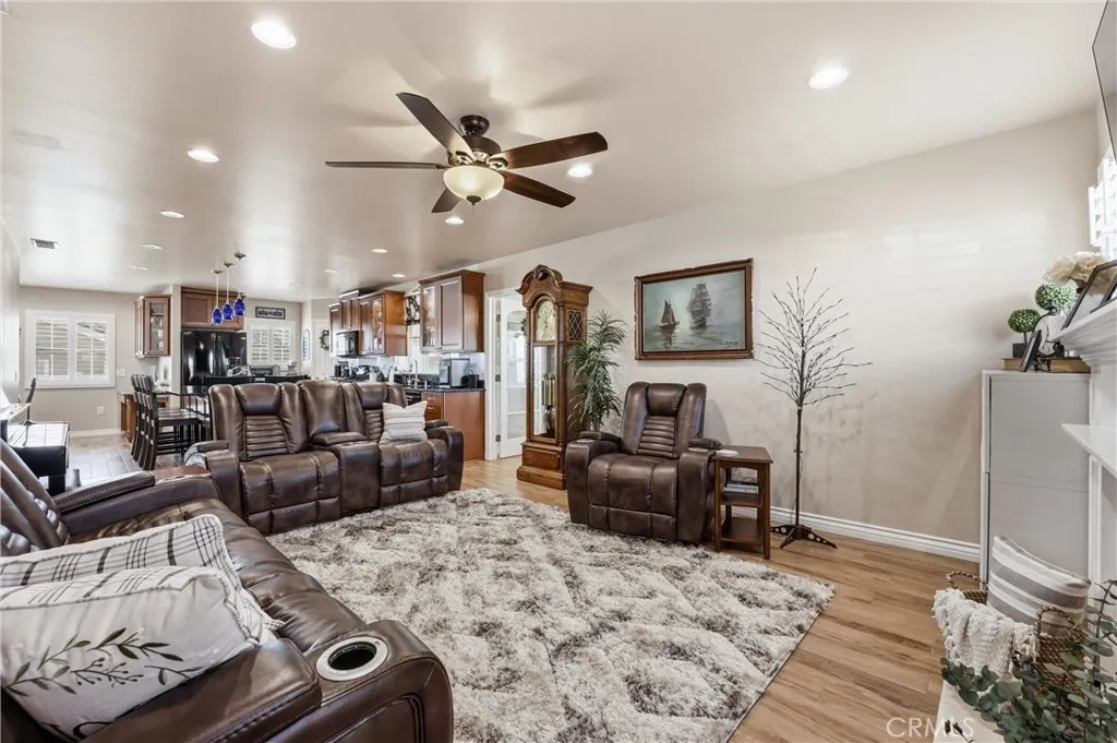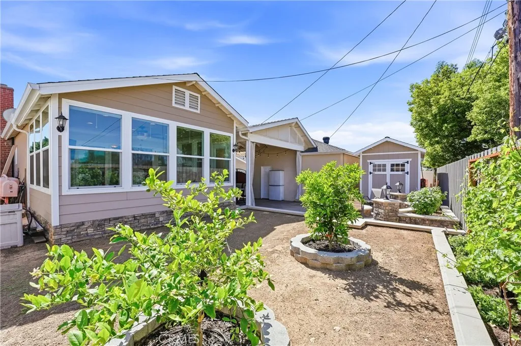 Completely rebuilt in 2014, this custom single-story home in Brea combines quality construction, upgrades, and everyday comfort. A welcoming covered front patio and classic brick entry set the tone for whats inside. The entry opens to a charming foyer before leading into the main living areas. The home features a bright, well-designed layout with plank-style porcelain tile flooring throughout, offering the look of hardwood with added durability. The family room is spacious, anchored by a custom stone fireplace and mantel, and enhanced with recessed lighting and an overhead ceiling fan. The kitchen sits open to the family room, making it ideal for everyday living and entertaining. It is beautifully finished with granite countertops, maple cabinetry, under-cabinet lighting, a walk-in pantry with adjustable shelving, and a large center island with its own prep sink. Additional highlights include pull-out shelving, built-in trash storage, and soft-close cabinets and drawers. This home offers 3 bedrooms plus a den/office and 2.5 baths. Just off the family room, the fourth room serves perfectly as a private office or den, with a sliding door that opens to a spacious enclosed patio/sunroom (sunroom not included in square footage). All three bedrooms are bright and well-appointed, each with recessed lighting, ceiling fans, and mirrored wardrobe doors. The bathrooms feature granite countertops, dual sinks in both full baths, upgraded tubs and showers, and all-in-one fan/heater/light/night light units for comfort and convenience. Beyond the finishes, major system upgrades include ele