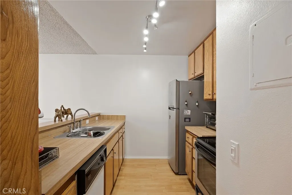 Charming one bedroom ready to be your new home. It features an open and bright floorplan with new energy efficient led lighting on dimmers, a fresh coat of paint and refresh. The grounds are well maintained and feature a sparkling pool, laundry, and 2 gated tandem parking spaces. Close to CSUN, shopping, dining and public transportation. Seller is including all furniture with sale to get you started.