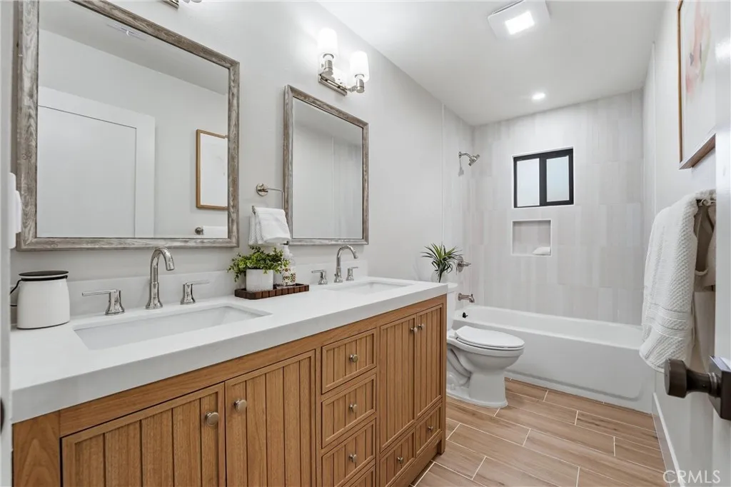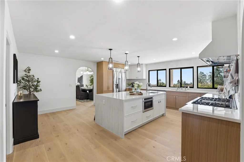 Nestled in the prestigious enclave of San Antonio Heights, this completely updated Upland residence offers elevated living with exceptional design, serene hilltop views, and a lifestyle prized for its privacy, community, and scenic backdrop. San Antonio Heights is a highly desirable neighborhood known for spacious homes, tranquil streets, breathtaking valley and mountain vistas, and strong demand with limited inventory making it one of Uplands most sought-after addresses. The heart of the home is a show-stopping chefs kitchen with semi-custom cabinets, quartz countertops with dramatic waterfall edge, a large center island, and professional-grade SKS stainless appliances including a 48 range with double oven. A generous walk-in pantry offers abundant storage. Designed for effortless entertaining, the open layout features a custom bar with wine fridge and ice maker flowing into a spacious family room with fireplace and oversized sliders that seamlessly connect indoor space to the entertainers backyard complete with outdoor kitchen. Down the hall, a cozy living room opens to an elegantly appointed dining room framed by a coved ceiling and sweeping views of the backyard and the Upland Valley beyond an ideal setting for both intimate dinners and large gatherings. The primary suite boasts the same panoramic outlook with step out patio access, a walk-in closet, and a spa inspired bath with an arched entry to a wet room featuring a tub and walk in shower. Three additional bright and spacious bedrooms share a beautifully updated hall bath with dual sinks. A third bathroom with exter