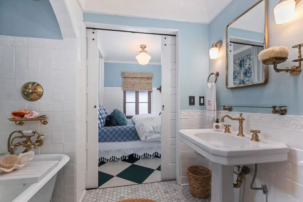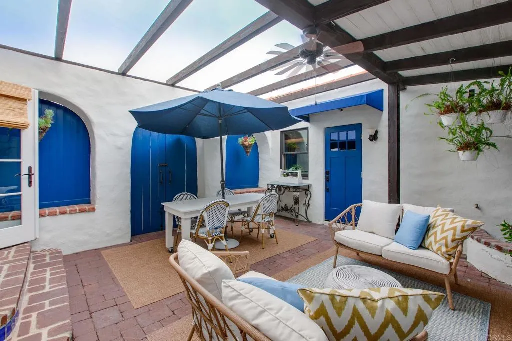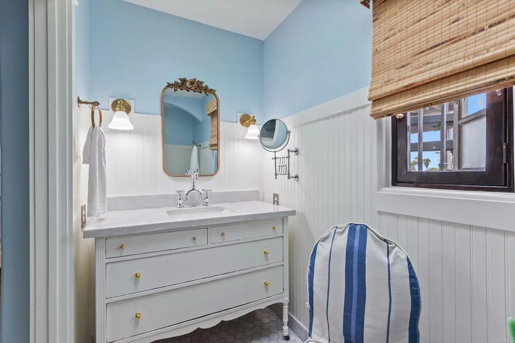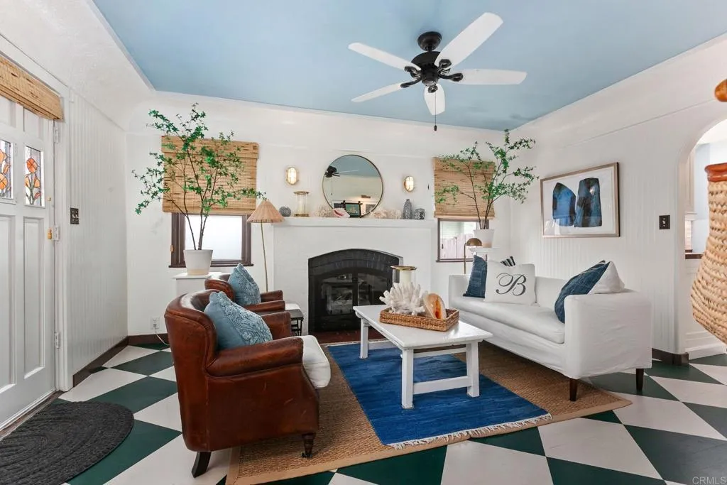 Welcome to "Casa Bonita," a meticulously designed home located in the desirable Seaside neighborhood, west of the 5 freeway in Oceanside. This coastal cottage-style residence offers a perfect blend of charm and modern elegance, all within short distance to vibrant shopping, entertainment, and dining options. It's also close to the famous Oceanside Pier, harbor, and train station, providing easy access to all the coastal amenities. This enchanting two-story home boasts ocean views and features an enclosed front patio that sets the tone for the elegance found within. Step into the charming living room adorned with a cozy fireplace and hardwood floors, leading to an updated, stylish kitchen and a dining area. The cozy family room opens up to a gorgeous al fresco patio, complete with a decorative fireplace, perfect for entertaining under the stars. The main level includes a bedroom and full bathroom, along with an additional room that can be transformed into a bonus space or extra bedroom. Upstairs, discover the primary suite masterpiece with a walk-in closet, and a versatile study that extends to a terrace with breathtaking ocean views. The home also features a rooftop deck offering views to Catalina on a clear day. The detached finished garage provides an opportunity for an office, craft room, or gym. With alley access, additional parking space in the backyard, and possible RV/boat parking, this home is both functional and stylish. Featured in " Cottages and Bungalows" designer magazine, "Casa Bonita" represents timeless elegance with thoughtful updates throughout. Embrace th