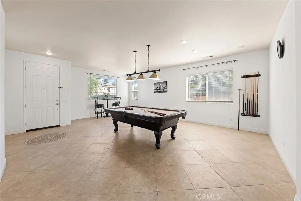 Located within the gated Victoria Grove Community, single story home .Newly renovated floors and paint ,with excellent maintenance and excellent natural lights.Three bedrooms, an additional office, two full bathrooms, two garages, and an elegant billiards room.Open floor plan with oversized kitchen area featuring granite countertops and upgraded finishes a large center island , and a beautiful hidden bar. The spacious master bedroom opens directly into the back yard and features a walk-in double closet, a separate wet and dry bathroom, and double granite vanities. Backyard with fountain and green wall offering excellent privacy, along with friendly and quiet neighbors. Stamped concrete floors, abundant greenery, and spacious front and back yards create a peaceful and harmonious living environment. The Victoria Grove community offers a robust suite of amenities, including two expansive parks, a baseball field, and a community lap pool and spa complete with on-site bathrooms. This home offers an unbeatable location just minutes from the Blue Ribbon Award-winning Lake Mathews Elementary School, with quick access to local shopping and major freeway routes. This home offers a rare balance of upgraded interior materials, a premier gated community location, and a backyard experience that is truly one-of-a-kind. This is where you can't miss this grand single-level residence.