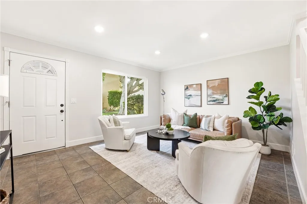Updated Fountain Valley townhome featuring a rare 2-car garage with direct access via patio and in-unit laundry. Located in a well-maintained community with pool and spa, this home offers a functional layout and extensive system and interior improvements. Main level includes a bright living area with large windows and new Milgard windows and sliding glass door providing natural light and access to the private patio. Tile flooring, recessed lighting, and updated switches and outlets throughout. Kitchen upgraded with white shaker cabinetry, stainless steel appliances, new kitchen faucet with cup sprayer, and dedicated stainless steel refrigerator water line. Private patio provides direct access to the attached 2-car garage, which includes a newly installed quiet garage door opener. In-unit laundry adds additional convenience. Significant system upgrades include new insulated ductwork, added ceiling vents in upstairs rooms, new register covers, and new asbestos-free furnace flue pipe. Prior asbestos abatement (ductwork wrap and furnace flue pipe) has been completed with removal of affected materials. Additional improvements include QuietCool whole house fan, QuietCool variable speed roof exhaust fan, solar-powered garage exhaust fan, and Honeywell WiFi thermostat. Additional features include Ring doorbell, new doorbell transformer and chime, updated lighting in upstairs bathroom and secondary bedroom, and new door for water heater enclosure. Upstairs bedrooms feature updated flooring and improved airflow from upgraded ducting. Community amenities include pool, spa, and landsca