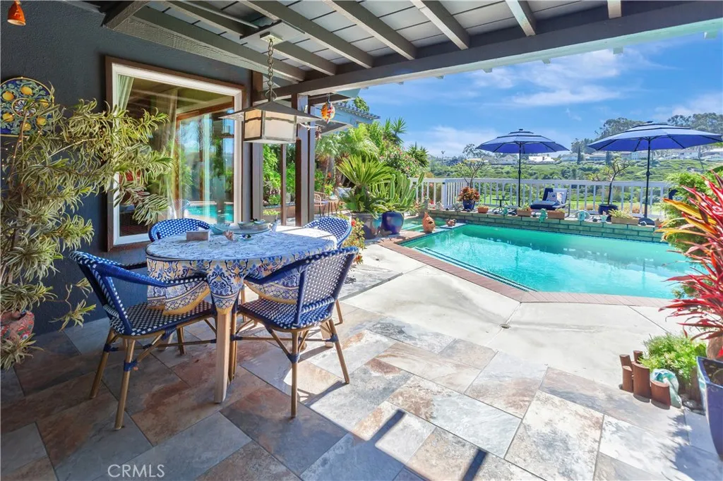 Back On Market! Rare opportunity to acquire a single-level golf course view home on an expansive 12,000 sq. ft. lot in one of Laguna Niguels most desirable neighborhoods. This 3-bedroom, 2.5-bath residence offers approximately 2,164 sq. ft. of living space and showcases panoramic views of the private El Niguel Golf Coursea setting that continues to drive significant redevelopment and long-term value along this highly sought-after street. From the moment you arrive, a charming enclosed courtyard and double-door entry create a welcoming introduction. Inside, oversized tile flooring leads into a spacious living room and adjoining dining area, both oriented toward the rear of the home where expansive golf course views take center stage. The backyard is designed for both relaxation and entertaining, featuring a pool and spa, generous patio space, and an elevated view deckall positioned to capture the full breadth of the surrounding landscape. The home has been thoughtfully updated over time, including enhanced kitchen finishes, custom cabinetry, and a professional-grade gas range and oven. The spacious primary suite offers an upgraded bath with an oversized soaking tub and direct access to the outdoor living areas. Two additional bedrooms are generously sized, while the secondary bathroom has been remodeled with custom tile, updated counters, and an oversized shower. Originally configured as a 3-car garage, the current layout includes a permitted conversion creating a 2-car garage plus integrated office space, offering flexibility for todays lifestyle needs while retaining the o