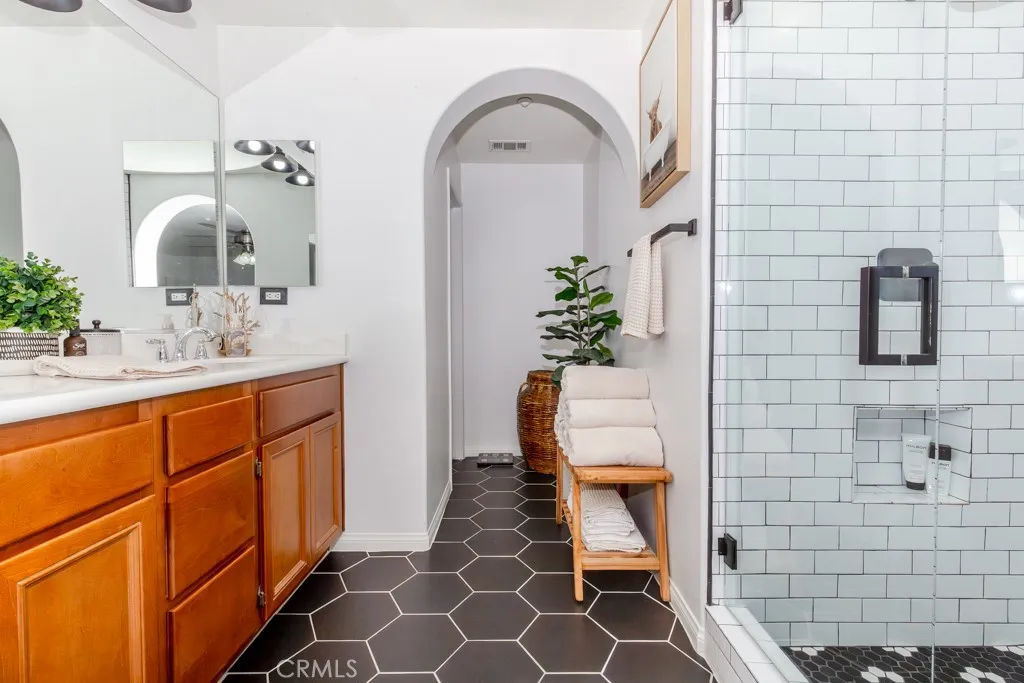 A Resort Style Community, with a Modern Designed unit and a ideal living location that is within walking distance to the mountain rimmed Dos Lagos Golf Course and Unique Eateries and Shops!! Tastefully updated within the last 2 years. Modern quartz counters, and stainless steel appliances bring the kitchen together nicely. Daylight lighting throughout the home radiates with its fresh clean white interior paint. Oversized windows illuminate with ideal natural lighting. Bedrooms are generous in size. The primary shower room is set for your own personal spa day! Beautifully Designed interior Arched Walkways really sets the style in this home. This Home has been very loved, and shows clean, crisp and sharp! ALL light switch covers, outlet covers and interior door handles are all finished in matt black and are definitely stylish! Excellent views to the shops across the street from the primary bedroom. The community is gated and the community pool is set up like a mini resort. Come see it all...