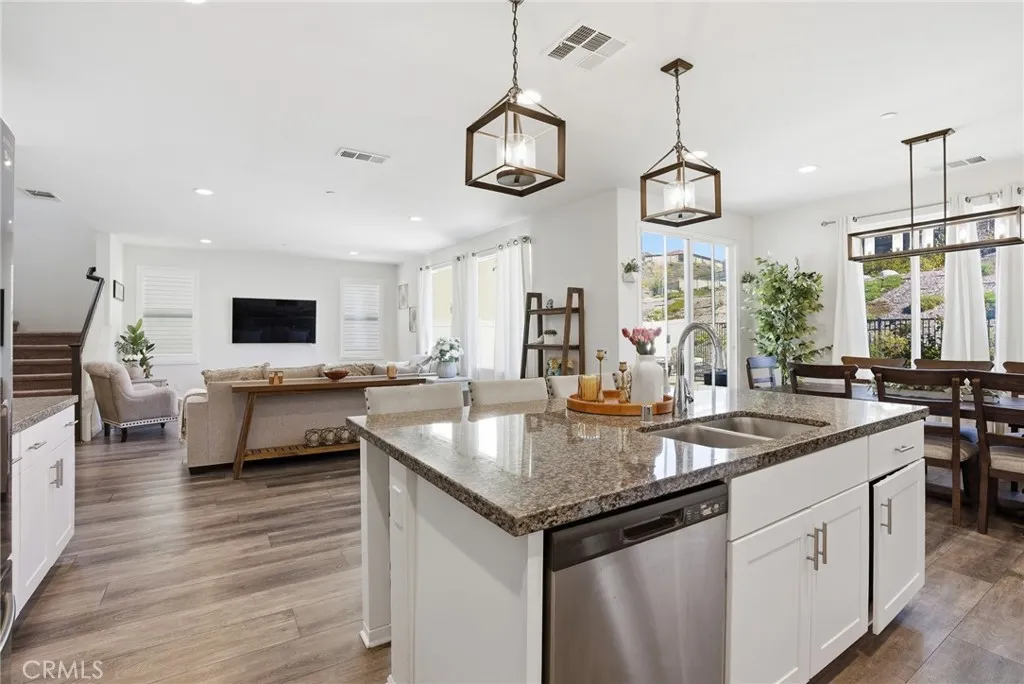 Welcome to this beautifully maintained 4-bedroom, 2.5-bathroom home in the highly desirable Skyline Ranch community of Santa Clarita. Offering a bright, open-concept layout and stylish modern finishes throughout, this home blends comfort, function, and everyday elegance. The main living area flows seamlessly into the spacious kitchen and dining space, creating the perfect setup for entertaining and daily living. The kitchen features a large center island with seating, abundant cabinetry, sleek countertops, stainless steel appliances, and contemporary lighting. Upstairs, the generous primary suite offers a peaceful retreat with a spa-inspired bathroom featuring dual sinks, a large walk-in shower, and a spacious walk-in closet. Additional bedrooms provide flexibility for family, guests, or a home office. Step outside to a beautifully designed low-maintenance backyard with artificial turf, patio space, and room to relax, dine, or entertain. The curb appeal is equally inviting with tasteful landscaping and a clean, modern exterior. Located in a sought-after community with access to exceptional amenities, residents enjoy The Lookout clubhouse, resort-style pools and spas, fitness centers, and extensive scenic trails. This is a wonderful opportunity to own a move-in-ready home in one of Santa Clarita's premier neighborhoods.
