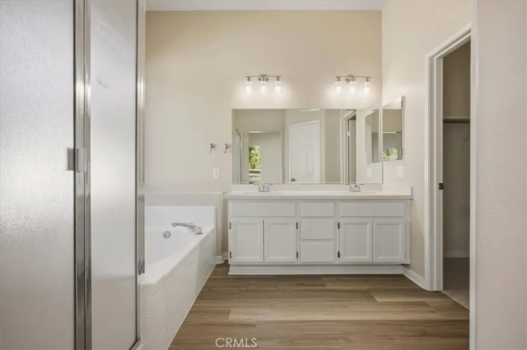 Welcome to this beautiful single level home, nestled in the hills of North Yucaipa! From the moment you arrive, youll appreciate the inviting curb appeal featuring a lush green lawn, mature foliage, a charming walkway leading to the front door, and a covered front patioperfect for relaxing or creating a cozy seating area. This spacious home offers an attached three-car garage and a thoughtfully designed layout filled with natural light. Upon entry, you are greeted by large windows that brighten the space, along with a formal living room and dining room to the rightideal for entertaining. The home is enhanced with new luxury vinyl flooring and designer sculpted carpeting throughout, adding both style and comfort. As you continue through the home, youll find an open-concept living area where the kitchen and family room seamlessly come together. The kitchen features crisp white cabinetry with ample storage, gleaming quartz counter tops, a center island with barstool seating, and space for an eat-in dining area. Large windows over the sink provide lovely views of the backyard. The adjoining living room showcases a beautiful brick fireplace with a decorative mantle, creating a warm and inviting atmosphere. Down the hallway, youll find a convenient linen closet and four generously sized bedrooms, each offering great space and storage. The primary suite is a true retreat, featuring double-door entry, an open layout, and sliding glass doors that lead to the backyard. The en-suite bathroom includes a double sink vanity, soaking tub, separate shower, and a spacious walk-in closet. Ad