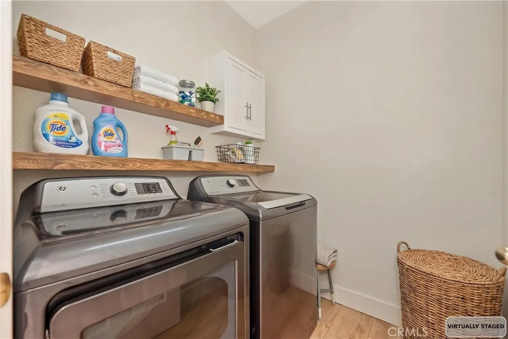 Beautifully updated home in convenient location! Located directly across from Orchard Park which sprawls over 10 acres and offers pickleball courts, walking/bike trails, baseball field, basketball and volleyball areas, playground, a skate park and more! This turnkey home has plenty of room for the whole family, offering 4 bedrooms, and 2 full bathrooms. Once you step inside, you are greeted into a light and bright open living area with tall ceilings that make the home feel grand. The fully remodeled kitchen is sure to please with a gas range, quartz countertops, modern tile backsplash, floating shelves, and a built-in microwave. The kitchen overlooks like open dining area and cozy living room. A gas fireplace sets the tone in the living room with a custom mantle and rock surround. A slider in the living room leads to the backyard which features a covered patio that is set among mature, low maintenance landscaping, with a shed for extra storage. Starting down the hallway are the 3 guest bedrooms, and indoor laundry room. At the end of the hall is the master suite, offering a massive walk-in closet, sliding glass door to the backyard, and spacious attached bathroom. Dual sinks with modern fixtures adorn the bathroom, as well as a soaking tub, and fully remodeled shower with a glass door. Some of the many upgrades include new flooring, new stainless steel appliances, new paint, updated bathrooms, and a 2 car garage. Come see it before it's gone! Some images contain virtual staging.
