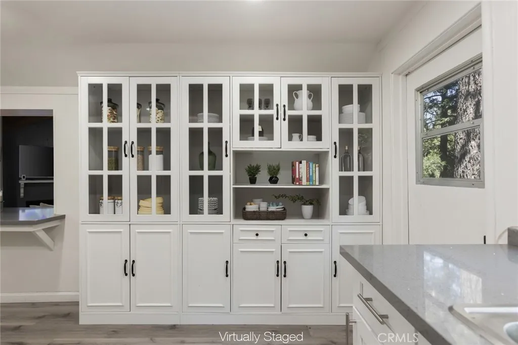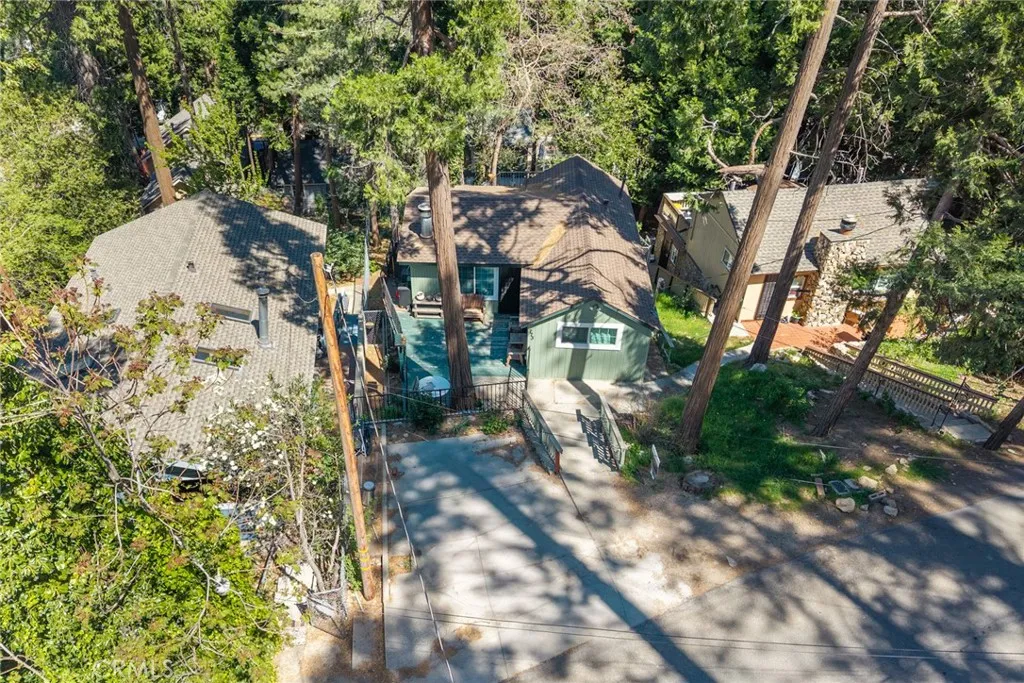 Just minutes from Lake Gregory and Crestline Village, 773 Woodland Road is a FULLY RENOVATED two-bedroom cabin that punches well above its square footage whether you're looking for a personal weekend escape, a full-time mountain residence, or a turnkey short-term rental investment. THE RENOVATIONS ARE DONE: new laminate flooring and subfloor throughout the main level, a beautifully updated kitchen with modern cabinetry, new stove, recessed lighting, and a charming built-in pantry plus a fully retiled bathroom with porcelain floors, new vanity, and tiled shower surround. Nothing to do but move in (or start booking guests). Step off the kitchen onto a spacious private deck surrounded by mature pines the kind of outdoor space that makes mornings in the mountains feel like a completely different life. The two-level layout gives you real flexibility: main-level bedroom and full bath for primary living, with a second bedroom and living area downstairs opening directly to the backyard ideal for guests, a home office, or extended family stays. RARE FOR CRESTLINE: off-street parking for two vehicles. Add indoor laundry, beamed ceilings, a cozy fireplace, double-pane windows, and zoned heating and cooling, and this cabin is dialed in year-round. Previously rented successfully and representing a compelling STR opportunity in one of Southern California's most accessible mountain communities just one hour from LA, Orange County, and the Inland Empire. Buyer to verify short-term rental regulations with the county.